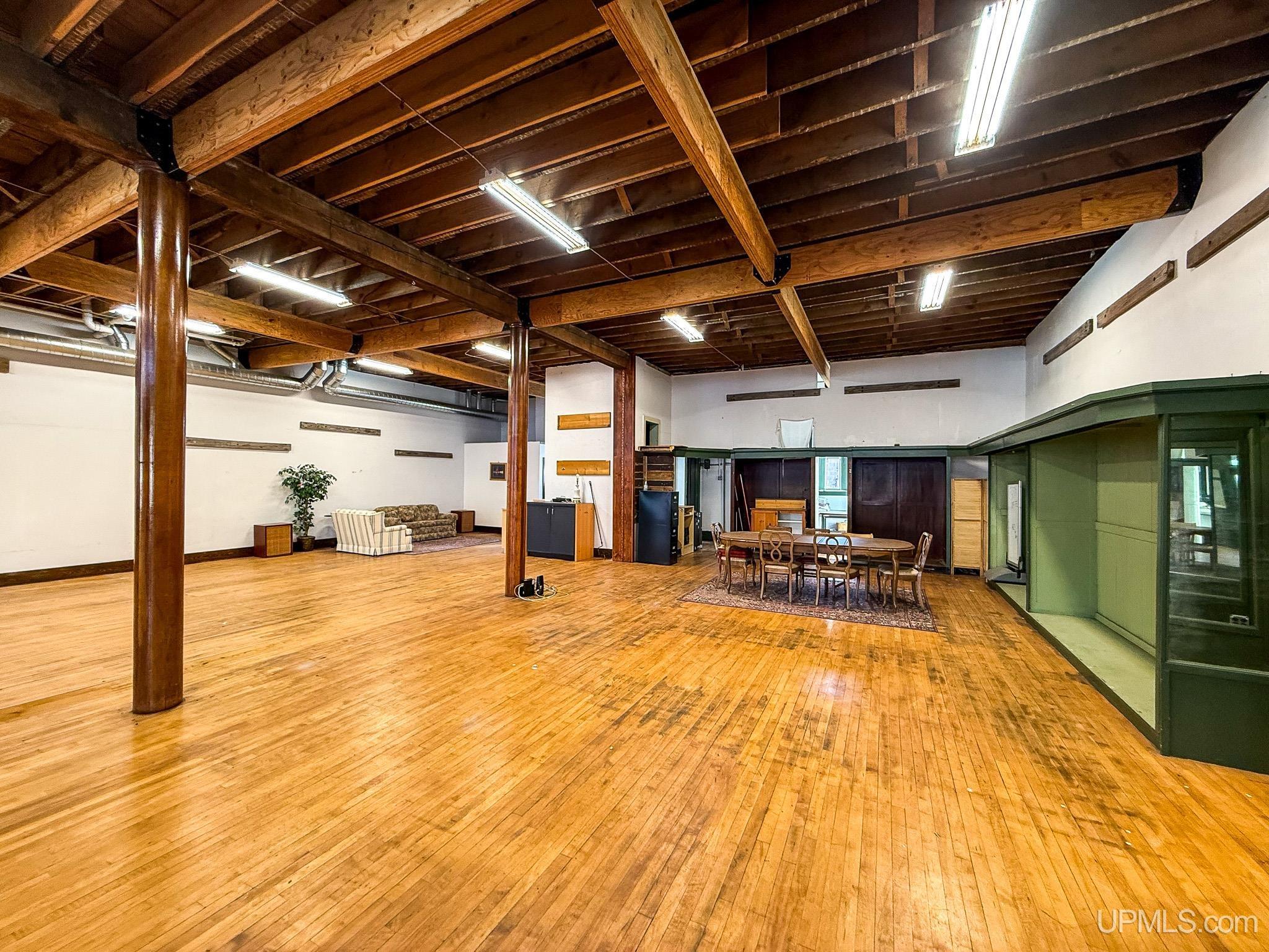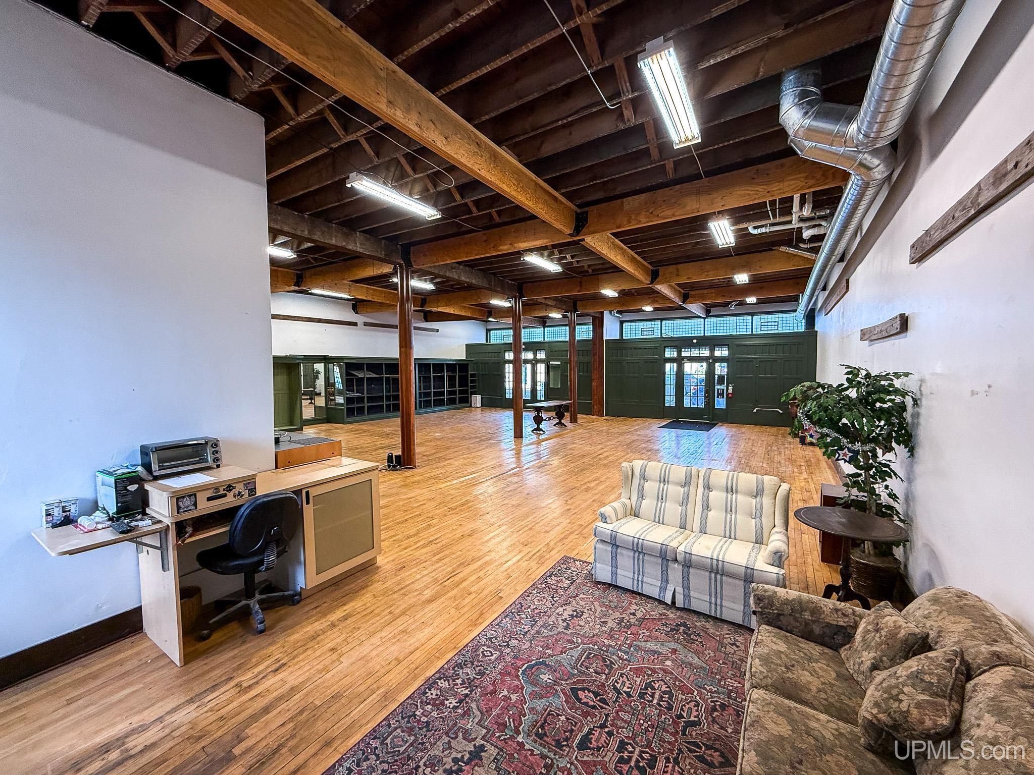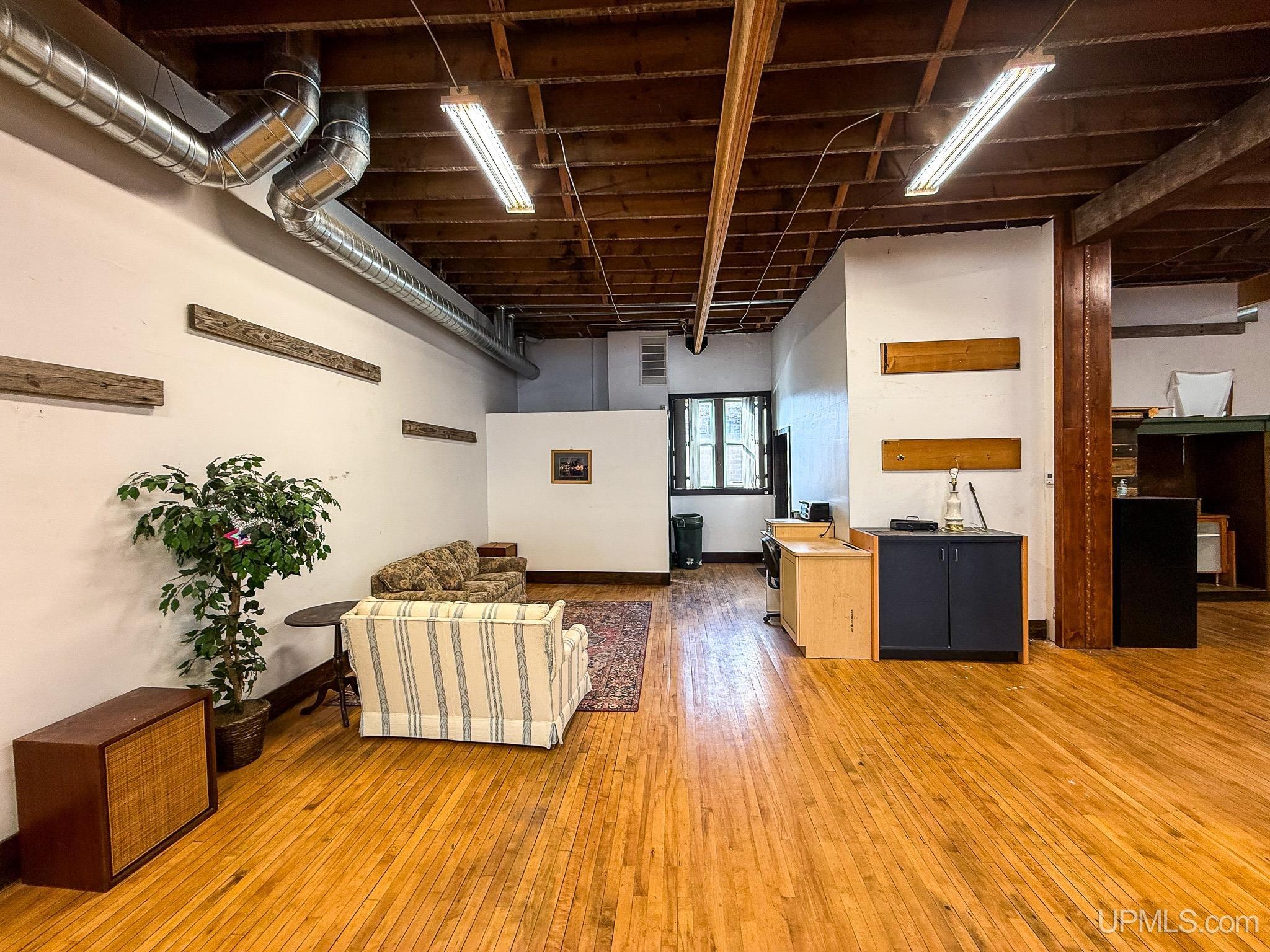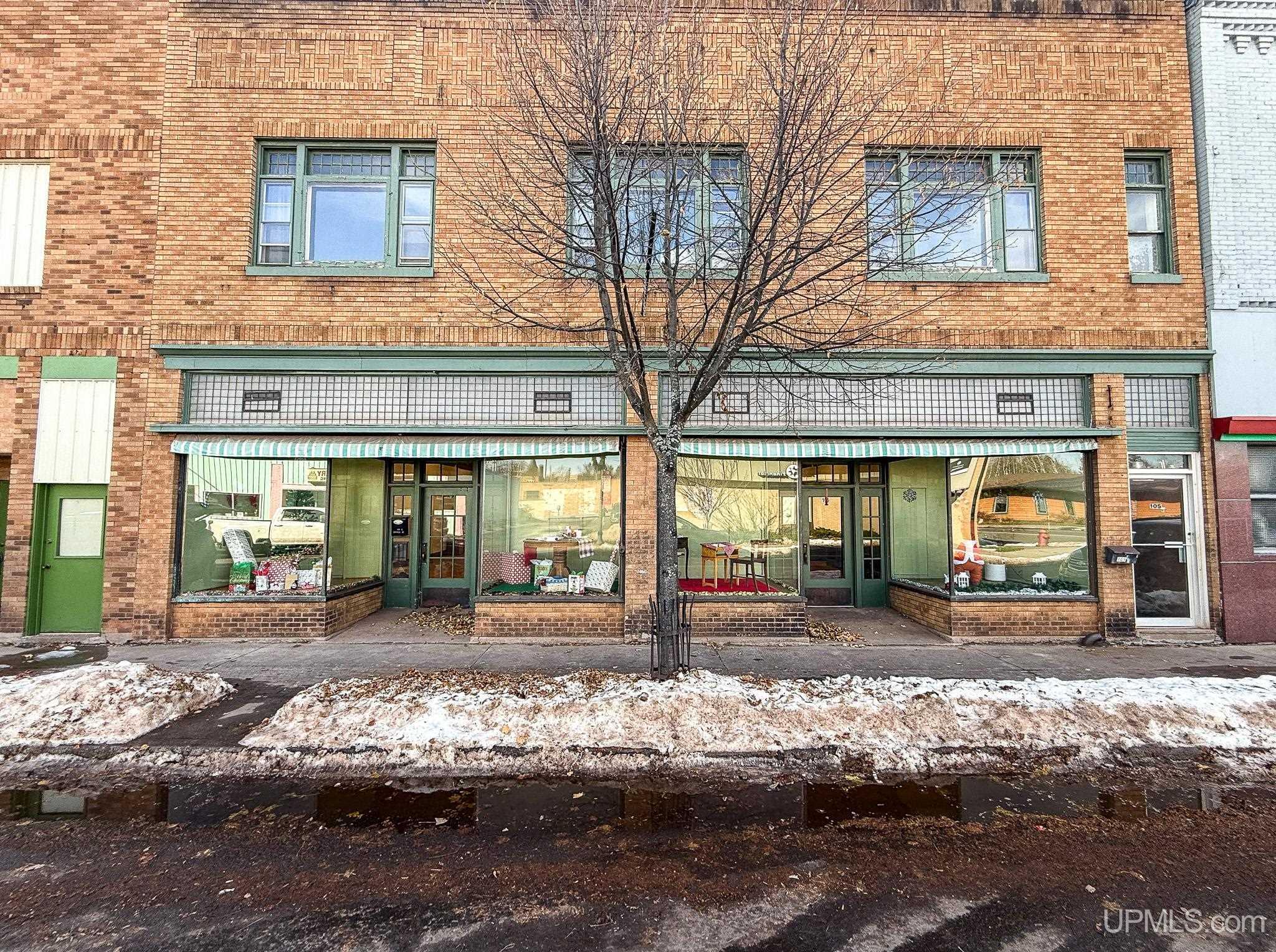 Get ready to fall in love with this large and unique investment property in Historic Downtown Ironwood! The main floor commercial space boasts hardwood floors throughout, beautiful exposed wood beams and posts, as well as 2 entrances and 4 front sidewalk window displays. There is a back storage area and utility closet that can be easily adapted to any business type. The extra large basement runs the length of the building and is perfect for any businesses needing room for inventory, storage, equipment or more! Above the commercial space are the residential living areas. When you enter the foyer, there are 2 individual apartments and 1 separate room that is being used as an owner's sleeping area, but could also serve as an office for the commercial space. There is a one bedroom, one bathroom apartment that was being used as a short and mid term style rental. Just off of that apartment there is a single room that was converted from the utility room into another sleeping area and could be added to the one bedroom apartment. This apartment also has access to the small exterior deck that holds the AC units and overlooks the back alleyway. The second apartment is a larger one bedroom, one bathroom with original windows that overlook Suffolk Street and was used as a long term rental. All of the upstairs areas have original woodwork around the trim, windows and a few of the original doors. With the right vision and the right buyer, this property could really be something special for the Downtown Area! |