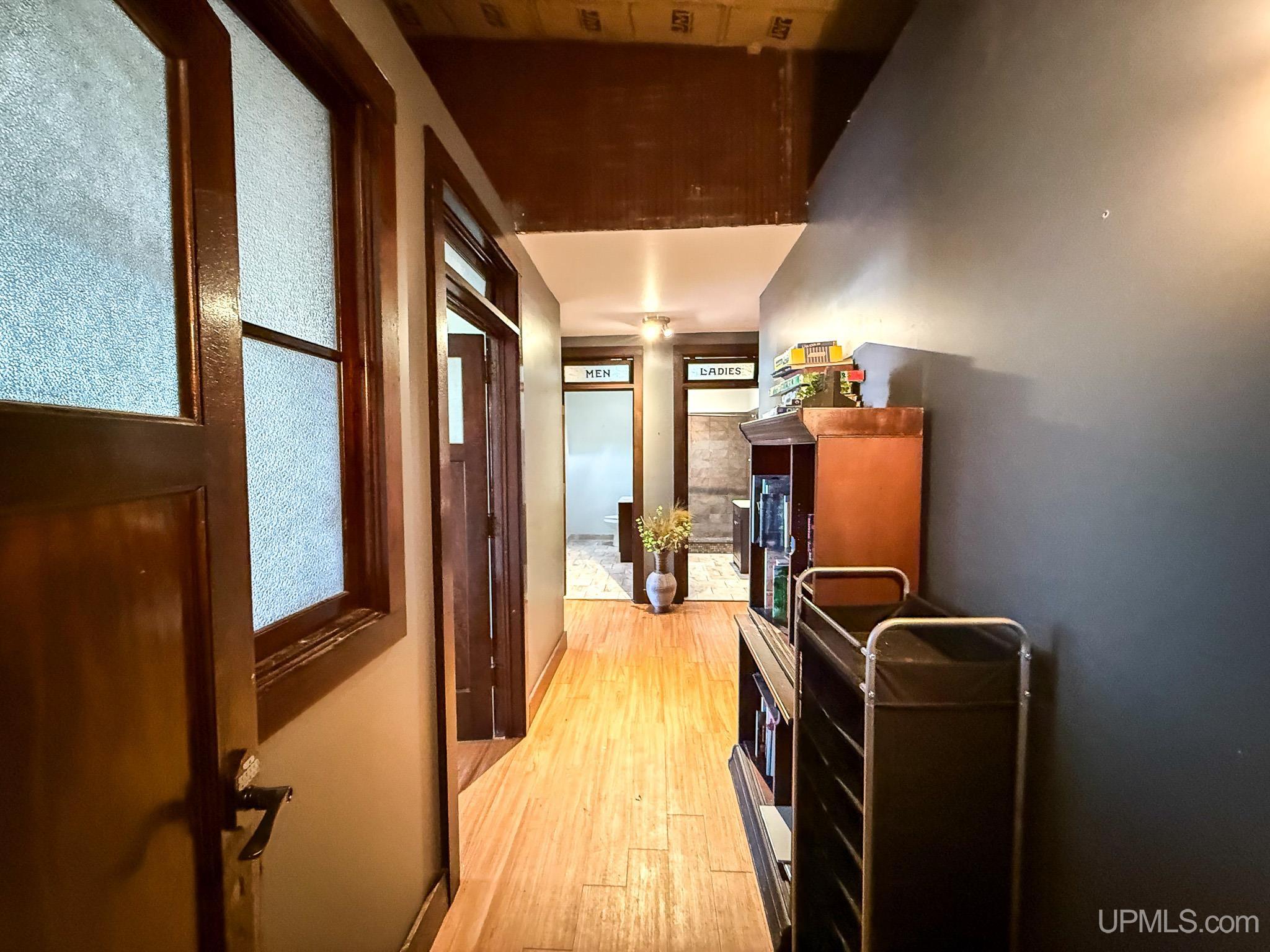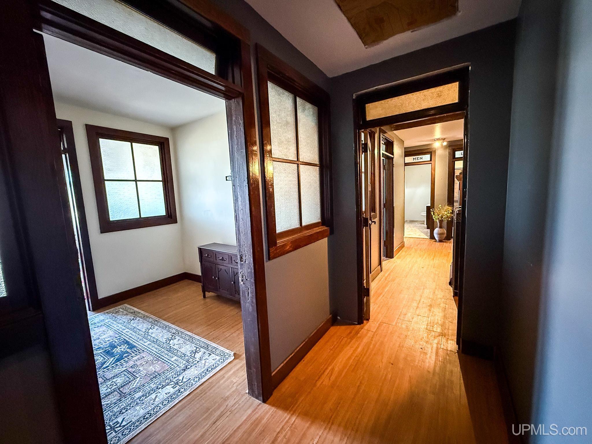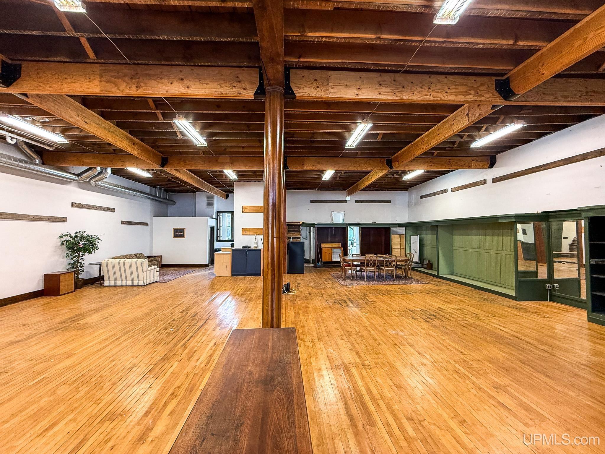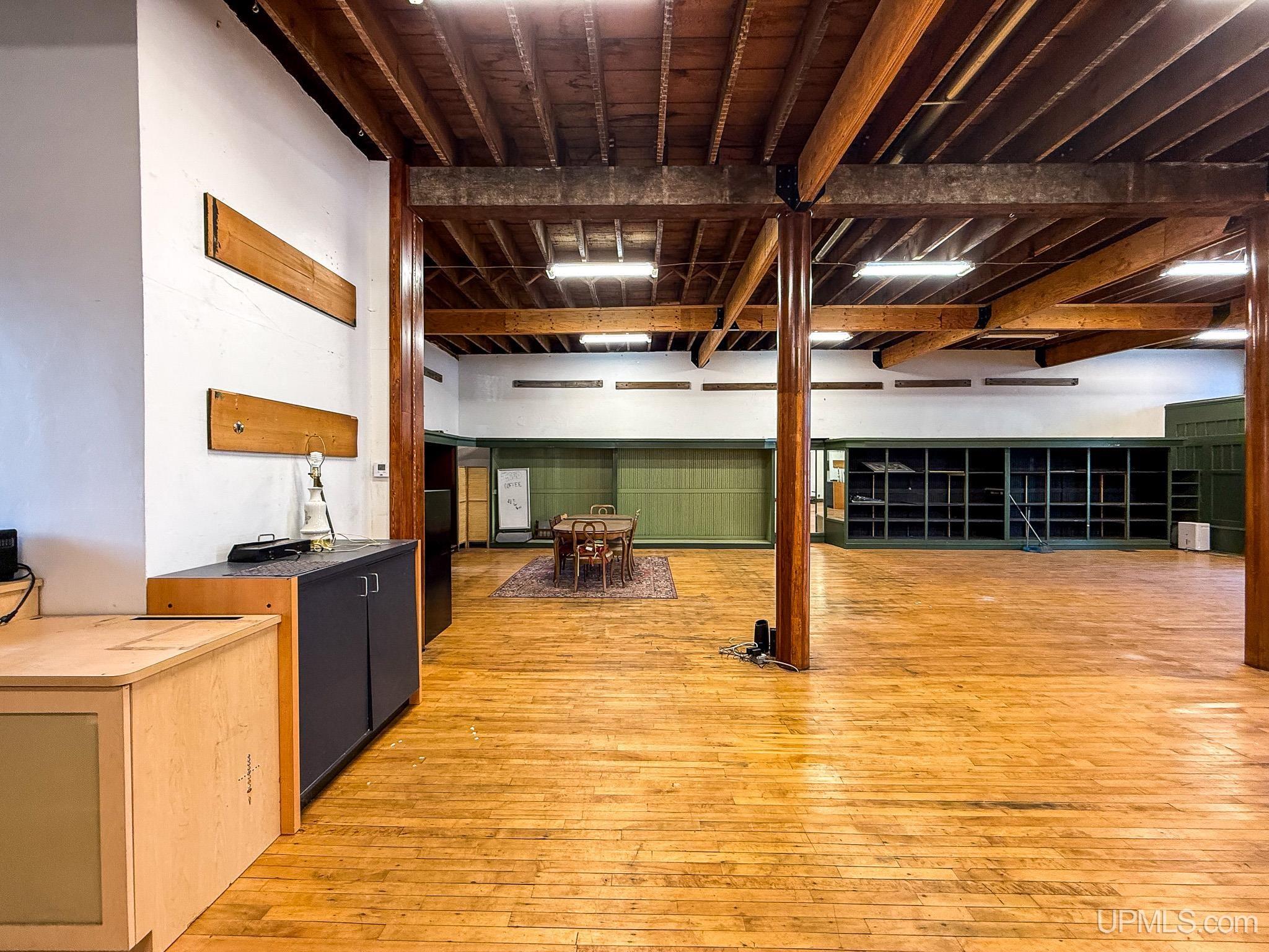 Get ready to fall in love with this large and unique investment property in Historic Downtown Ironwood! The main floor commercial space boasts hardwood floors throughout, beautiful exposed wood beams and posts, as well as 2 entrances and 4 front sidewalk window displays. There is a back storage area and utility closet that can be easily adapted to any business type. The extra large basement runs the length of the building and is perfect for any businesses needing room for inventory, storage, equipment or more! Above the commercial space are the residential living areas. When you enter the foyer, there are 2 individual apartments and 1 separate room that is being used as an owner's sleeping area, but could also serve as an office for the commercial space. There is a one bedroom, one bathroom apartment that was being used as a short and mid term style rental. Just off of that apartment there is a single room that was converted from the utility room into another sleeping area and could be added to the one bedroom apartment. This apartment also has access to the small exterior deck that holds the AC units and overlooks the back alleyway. The second apartment is a larger one bedroom, one bathroom with original windows that overlook Suffolk Street and was used as a long term rental. All of the upstairs areas have original woodwork around the trim, windows and a few of the original doors. With the right vision and the right buyer, this property could really be something special for the Downtown Area! |