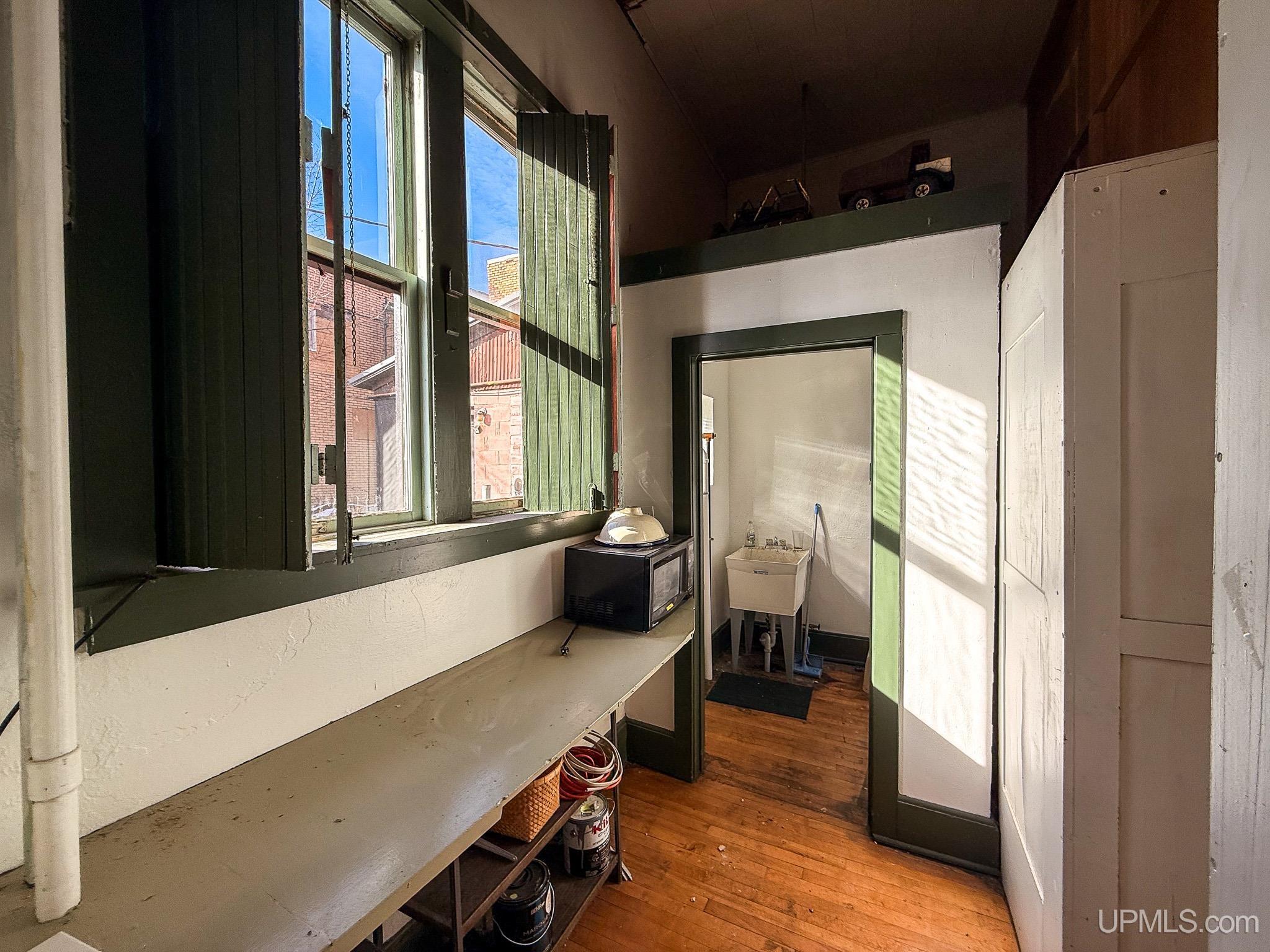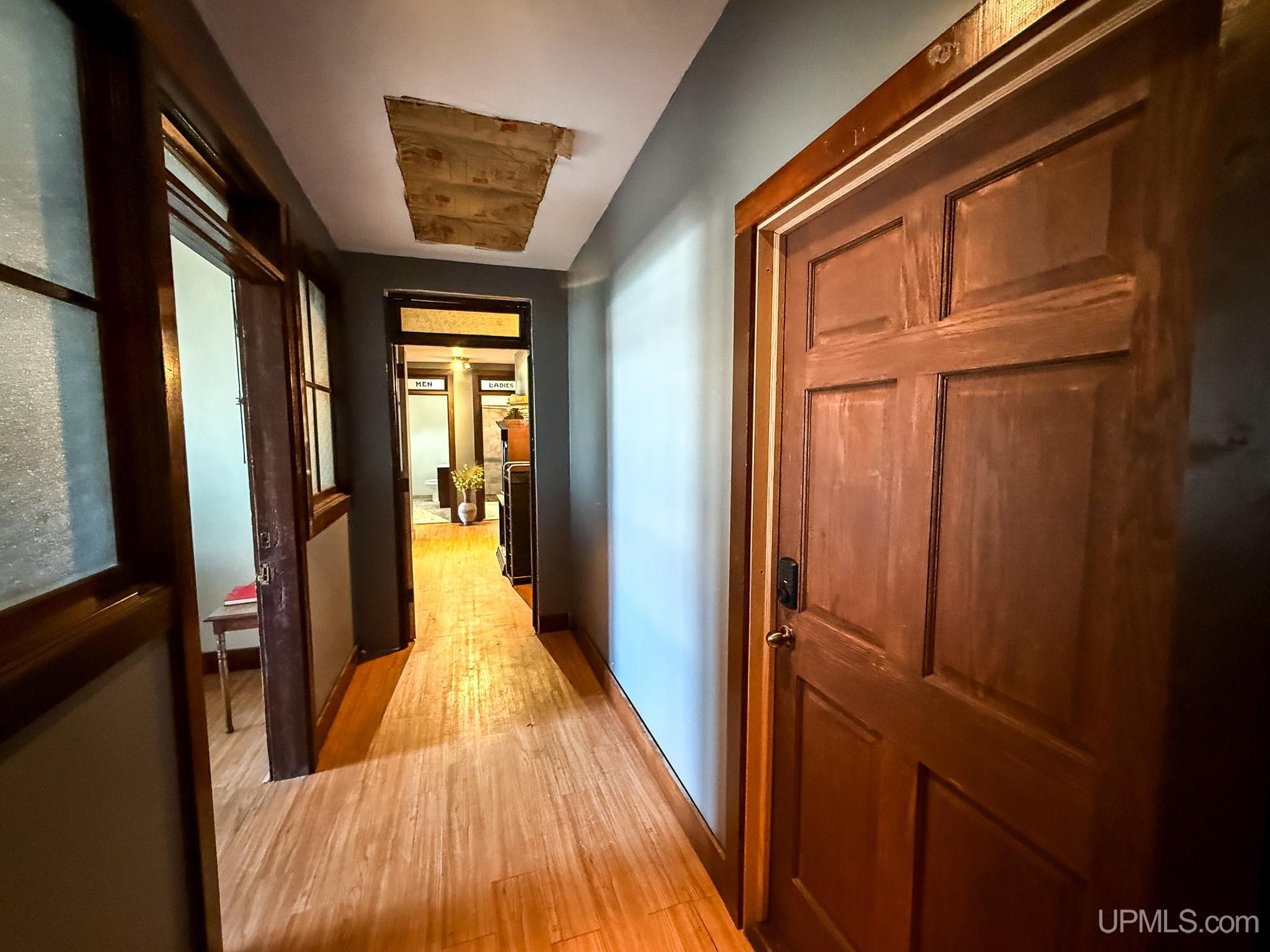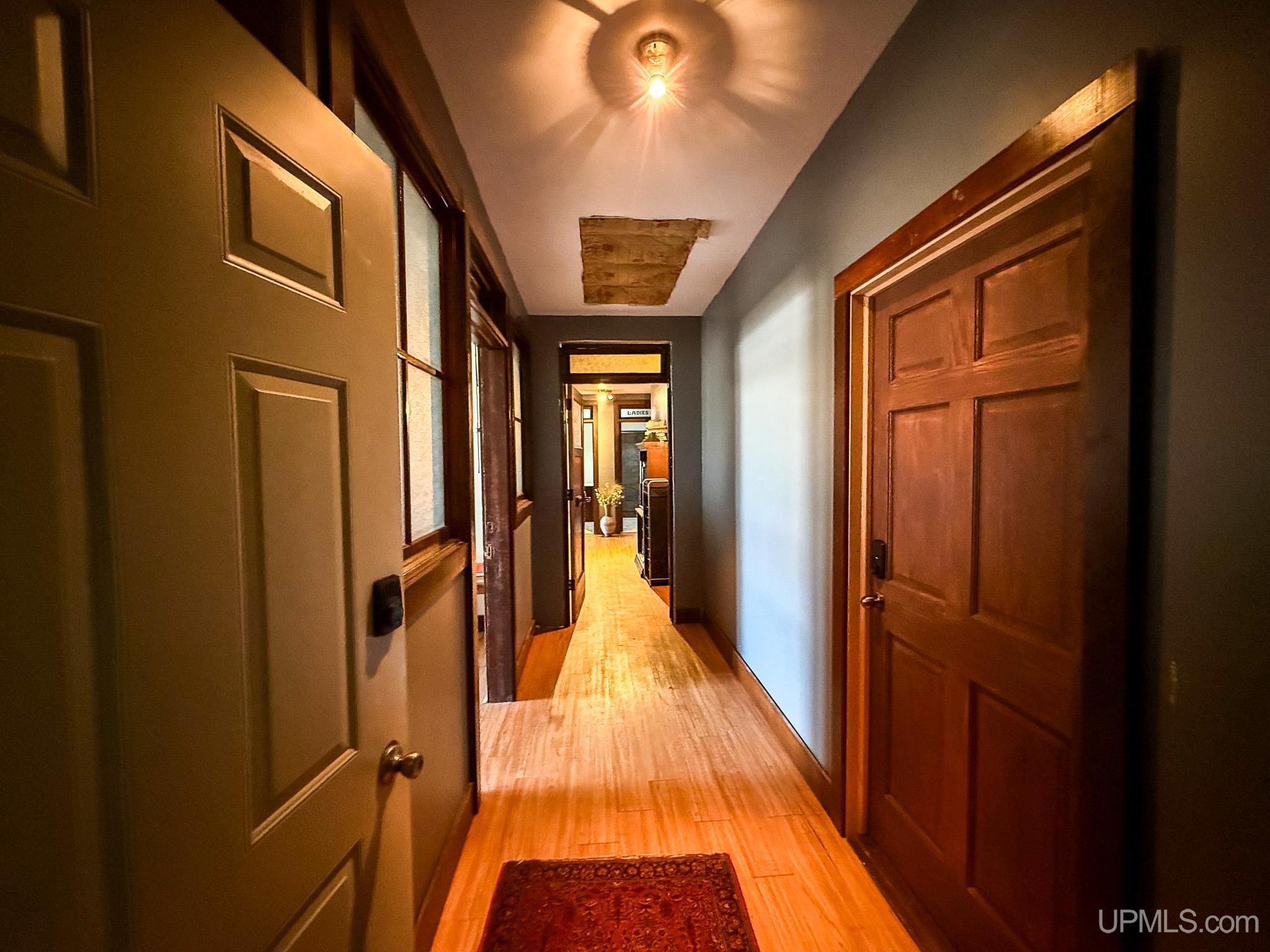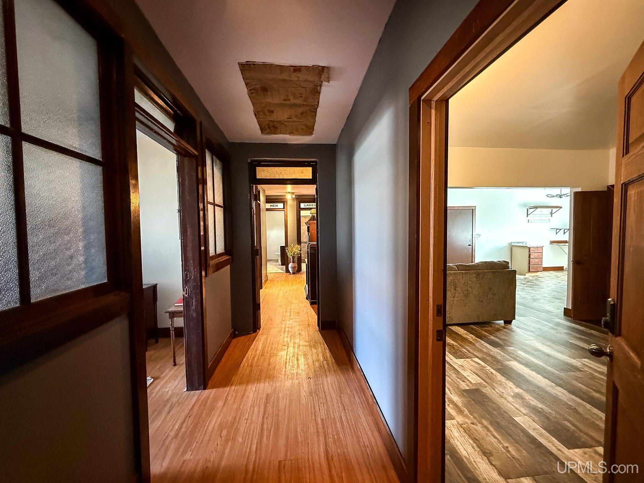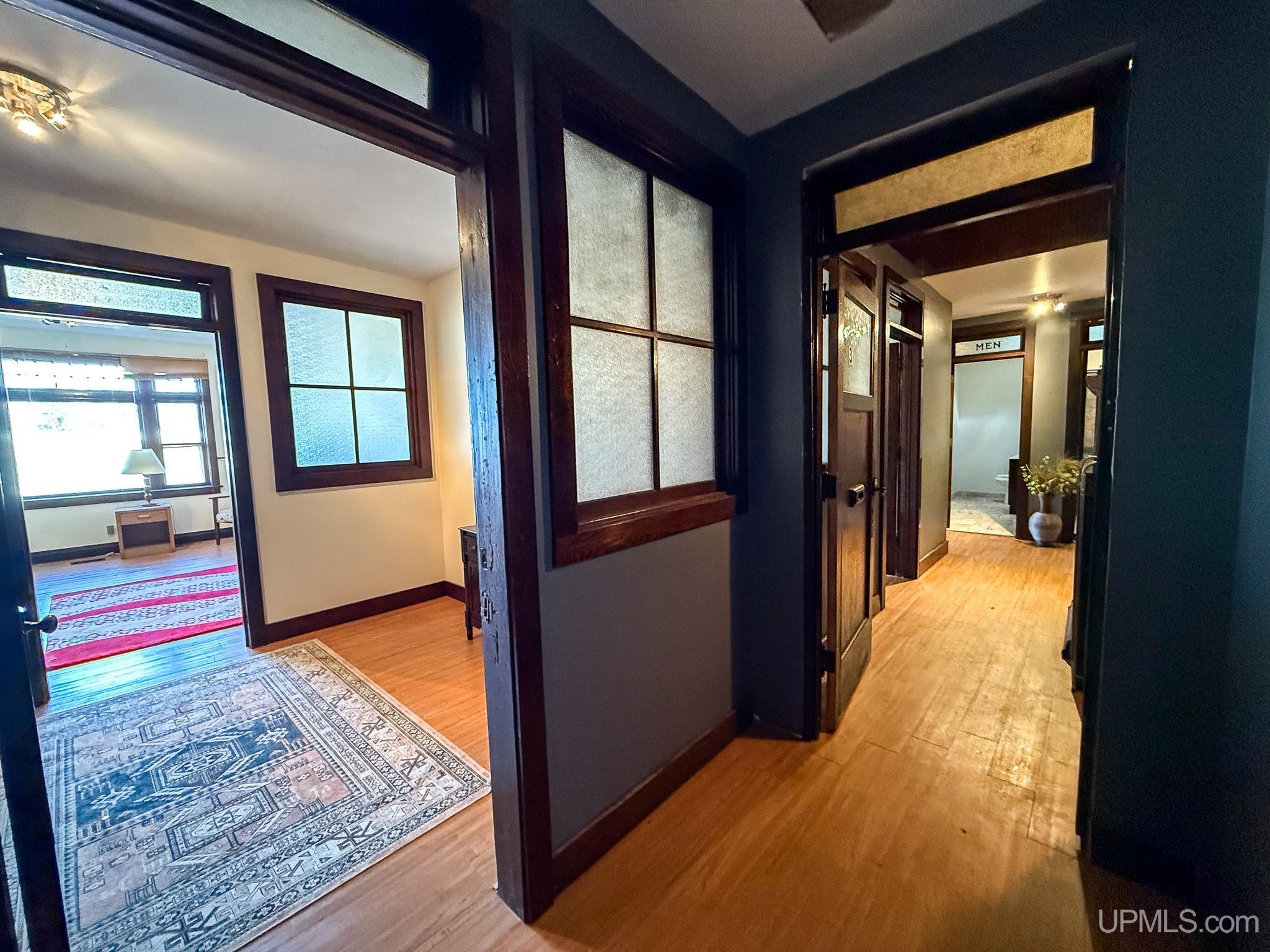 Get ready to fall in love with this large and unique investment property in Historic Downtown Ironwood! The main floor commercial space boasts hardwood floors throughout, beautiful exposed wood beams and posts, as well as 2 entrances and 4 front sidewalk window displays. There is a back storage area and utility closet that can be easily adapted to any business type. The extra large basement runs the length of the building and is perfect for any businesses needing room for inventory, storage, equipment or more! Above the commercial space are the residential living areas. When you enter the foyer, there are 2 individual apartments and 1 separate room that is being used as an owner's sleeping area, but could also serve as an office for the commercial space. There is a one bedroom, one bathroom apartment that was being used as a short and mid term style rental. Just off of that apartment there is a single room that was converted from the utility room into another sleeping area and could be added to the one bedroom apartment. This apartment also has access to the small exterior deck that holds the AC units and overlooks the back alleyway. The second apartment is a larger one bedroom, one bathroom with original windows that overlook Suffolk Street and was used as a long term rental. All of the upstairs areas have original woodwork around the trim, windows and a few of the original doors. With the right vision and the right buyer, this property could really be something special for the Downtown Area! |