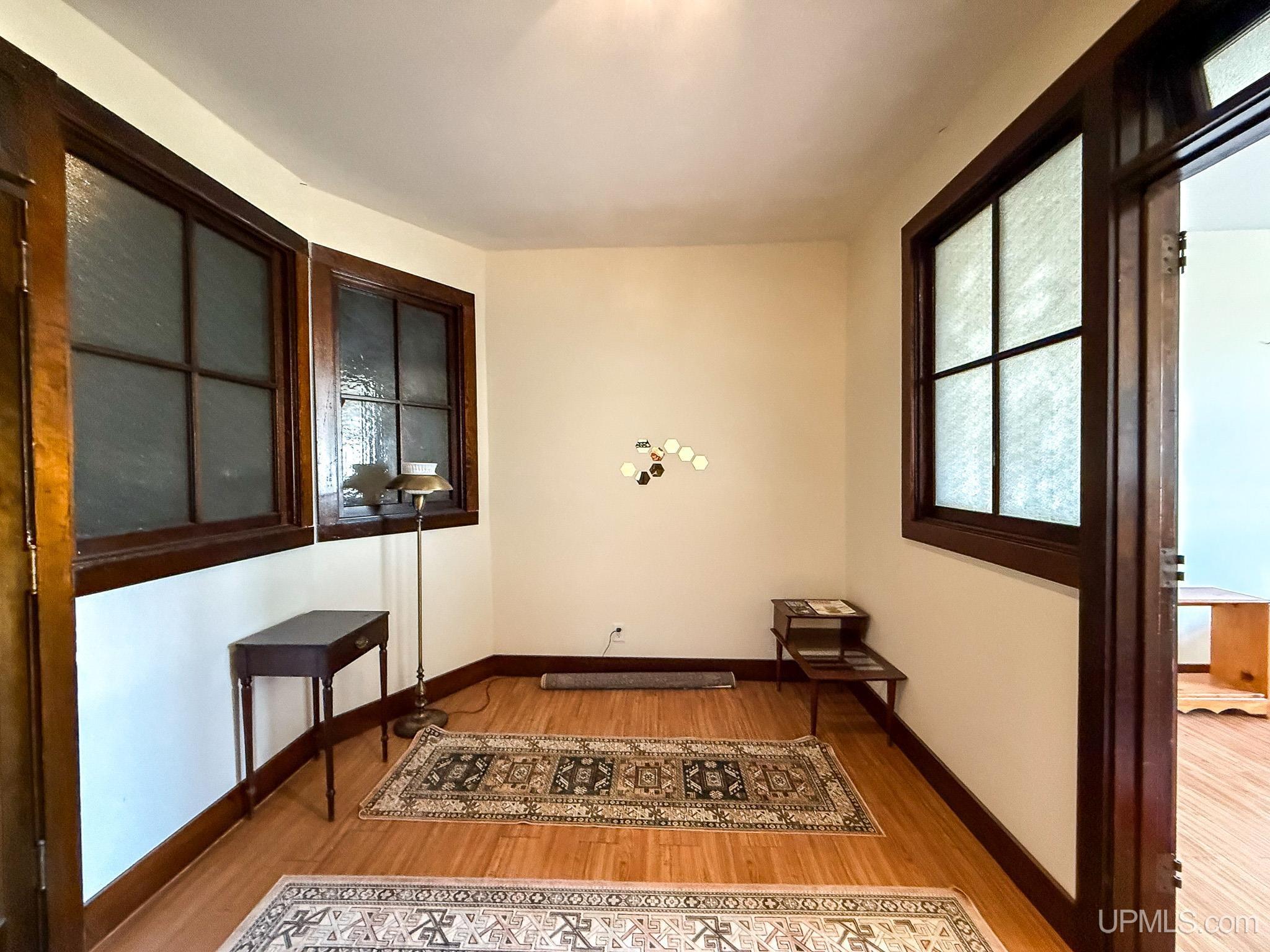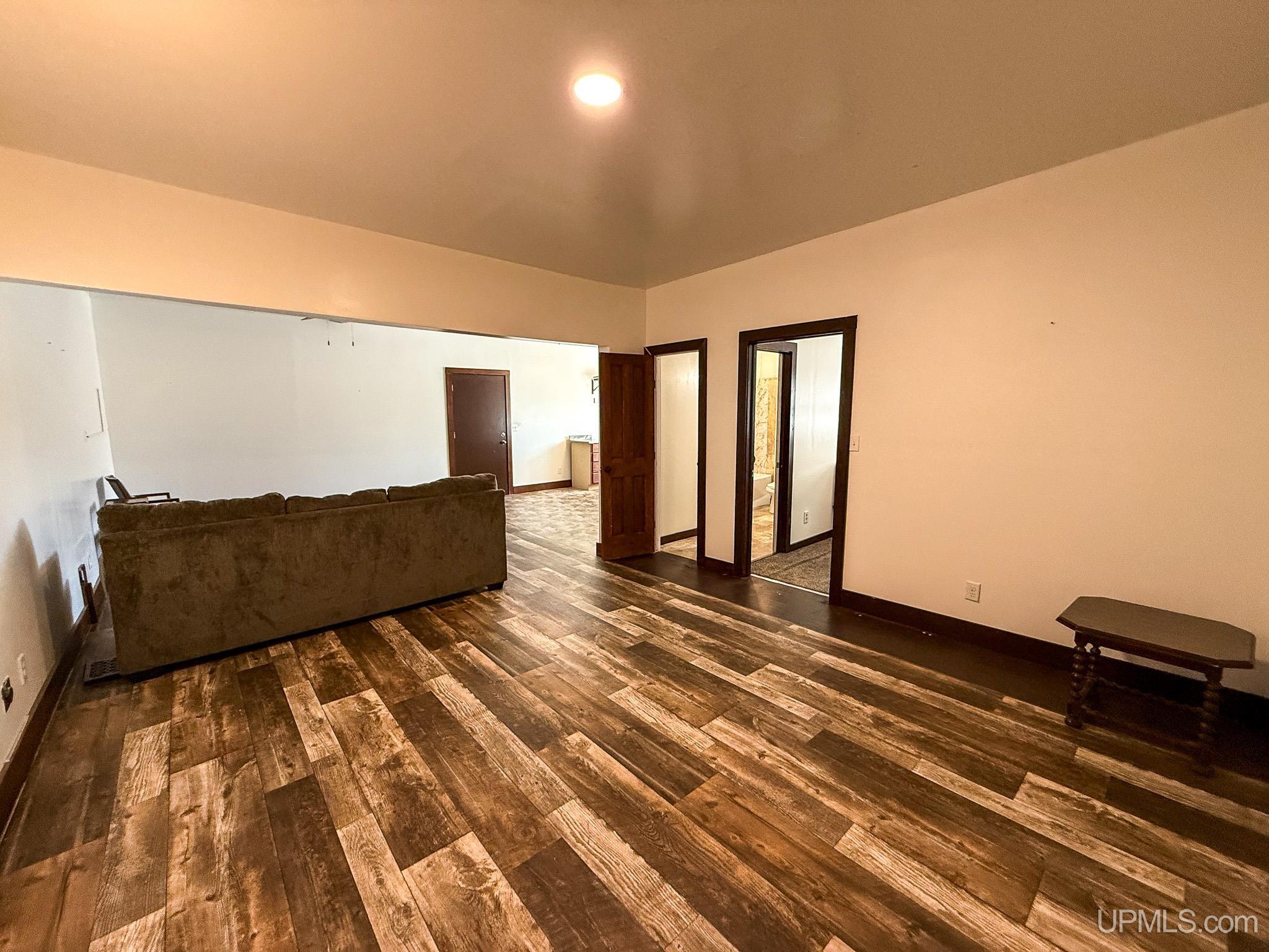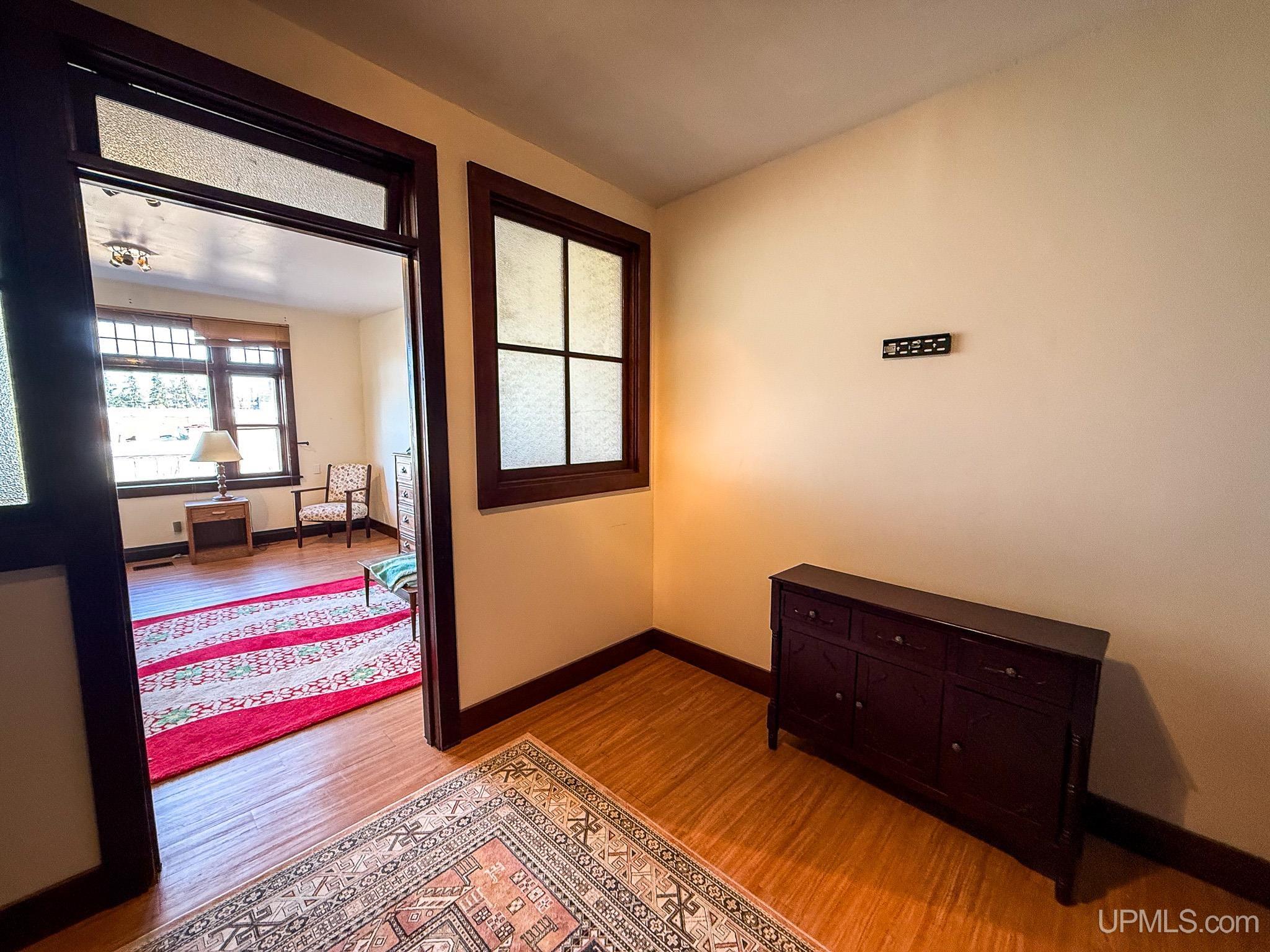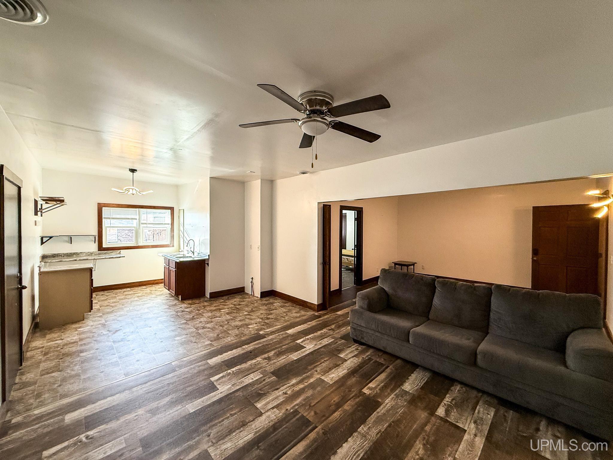 Get ready to fall in love with this large and unique investment property in Historic Downtown Ironwood! The main floor commercial space boasts hardwood floors throughout, beautiful exposed wood beams and posts, as well as 2 entrances and 4 front sidewalk window displays. There is a back storage area and utility closet that can be easily adapted to any business type. The extra large basement runs the length of the building and is perfect for any businesses needing room for inventory, storage, equipment or more! Above the commercial space are the residential living areas. When you enter the foyer, there are 2 individual apartments and 1 separate room that is being used as an owner's sleeping area, but could also serve as an office for the commercial space. There is a one bedroom, one bathroom apartment that was being used as a short and mid term style rental. Just off of that apartment there is a single room that was converted from the utility room into another sleeping area and could be added to the one bedroom apartment. This apartment also has access to the small exterior deck that holds the AC units and overlooks the back alleyway. The second apartment is a larger one bedroom, one bathroom with original windows that overlook Suffolk Street and was used as a long term rental. All of the upstairs areas have original woodwork around the trim, windows and a few of the original doors. With the right vision and the right buyer, this property could really be something special for the Downtown Area! |