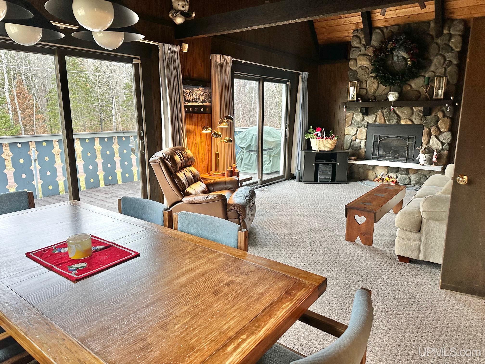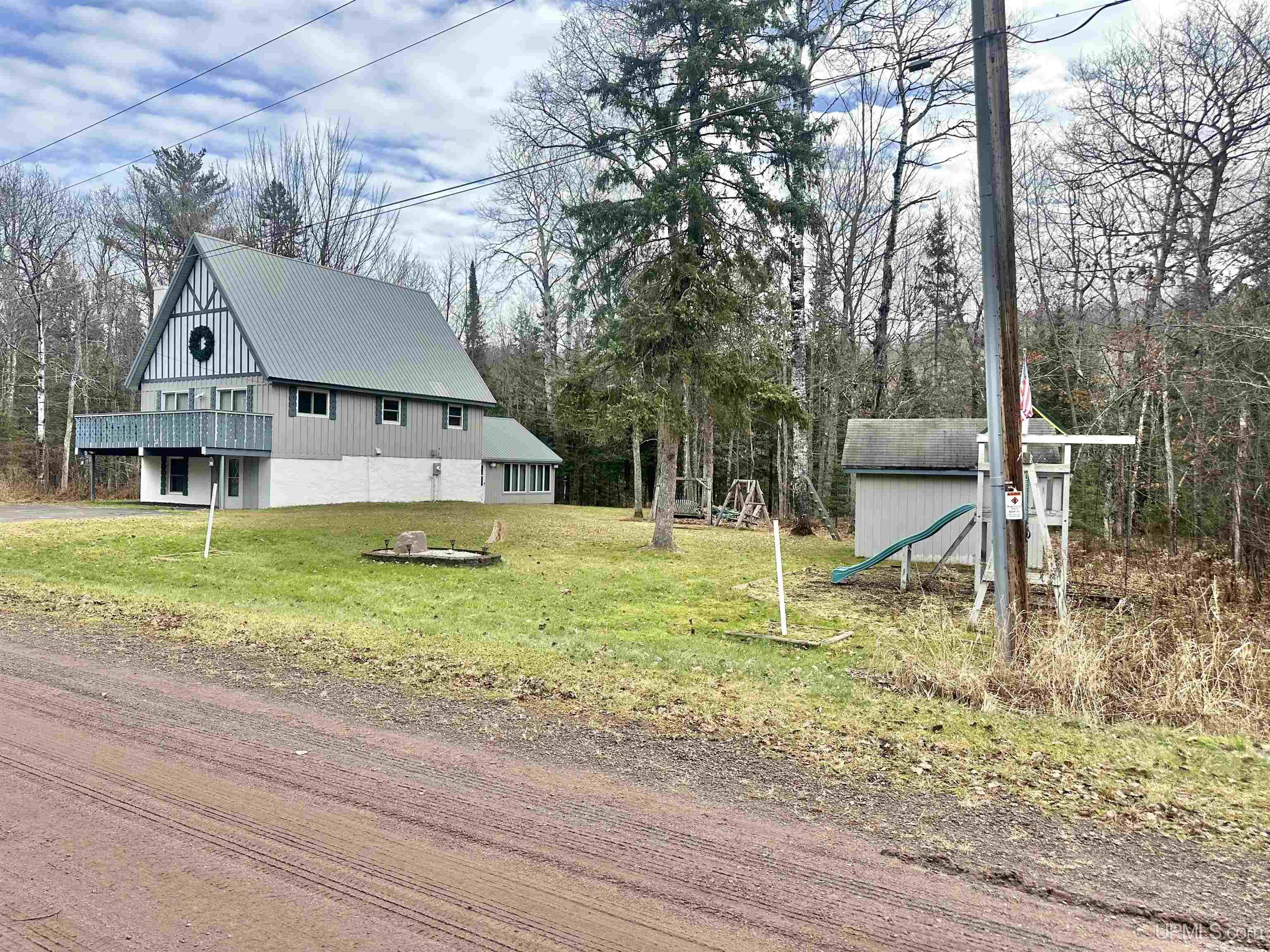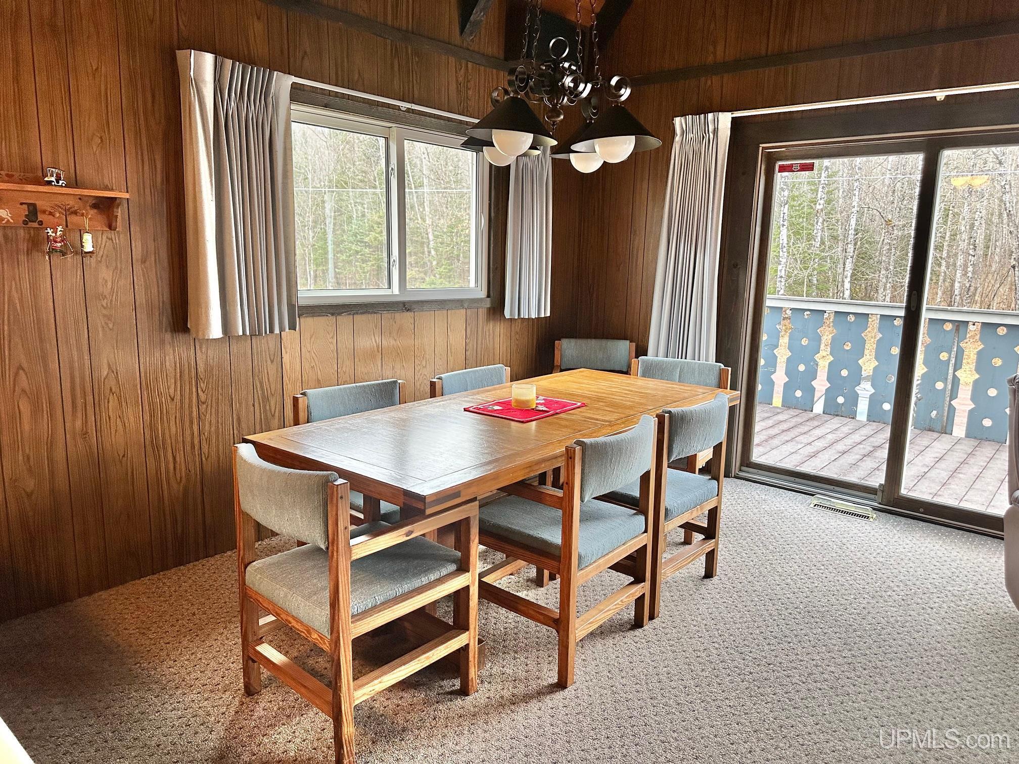 Tri-Level Ski Chalet near Big Powderhorn Mountain- 4 br, 2.5 bath fully furnished & move-in ready. This unit offers privacy, scenery, and generous living space with the Powder Mill Creek as the East border. Main level offers a family room, laundry room/storage/workshop plus an addition that was used as a hot tub room (hot tub does not work) but has endless possibilities. Second level has the living room, dining room, kitchen, full bathroom and 2 bedrooms along with access to the deck. Third level has 2 additional bedrooms, full bath and ladder access to the loft. This unit has an extra lot for added privacy and an easy walk back to the creek. This home is equipped with 2 fireplaces, 2 sheds and a firepit. Conveniently located just North of US2 and about a mile to the snowmobile/atv/Iron Belle trails. Don't miss your chance to own this unique property. |