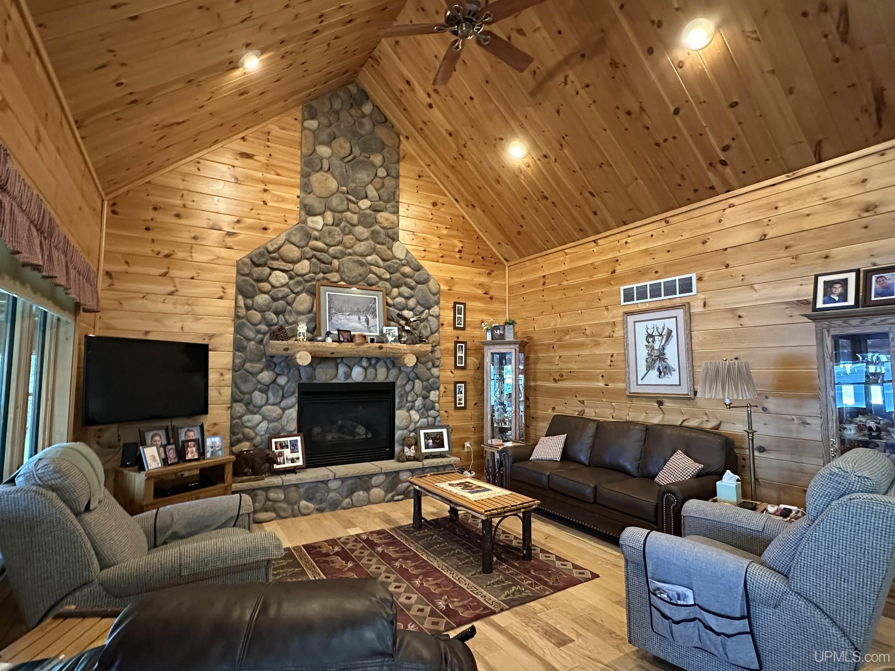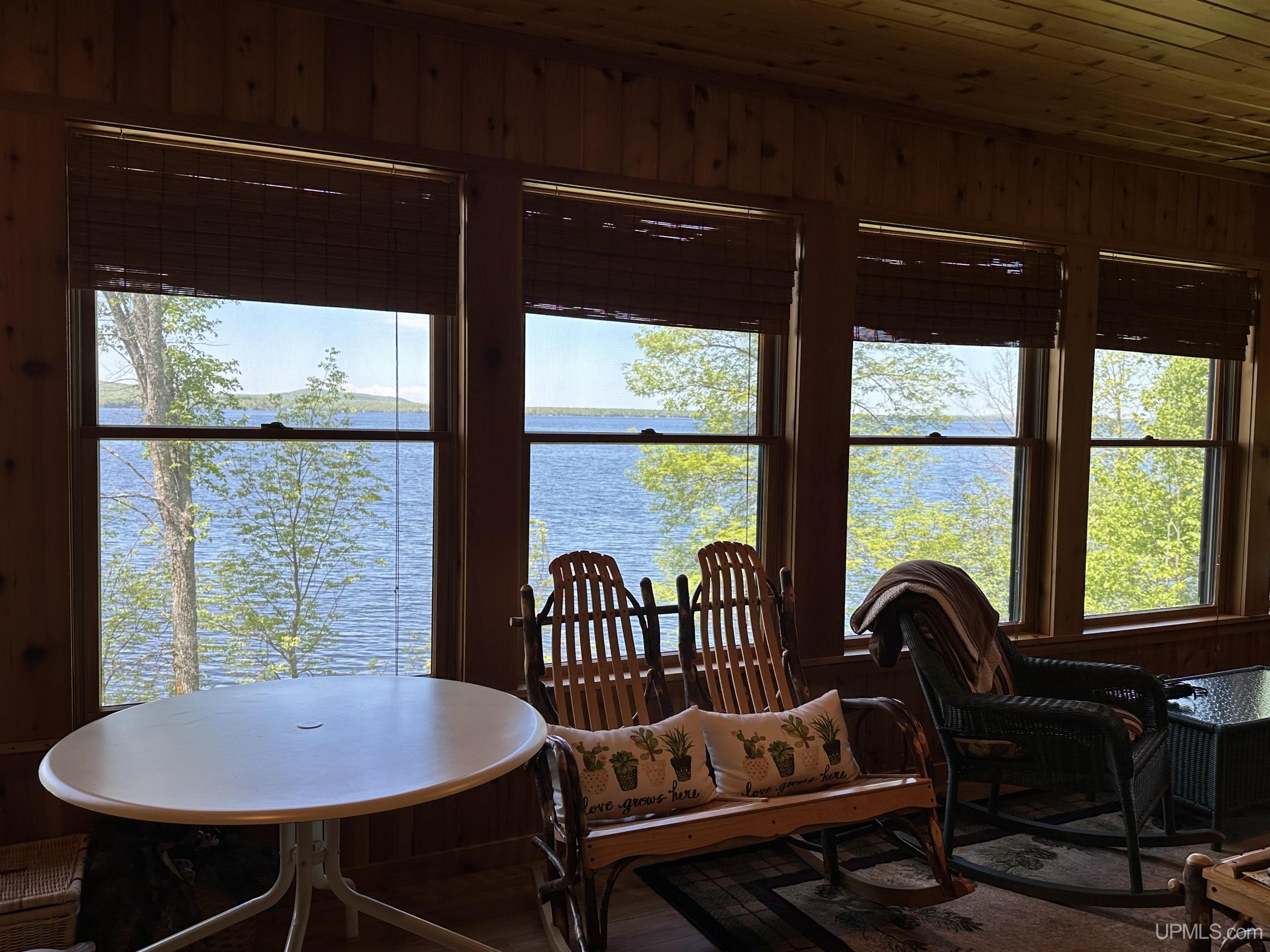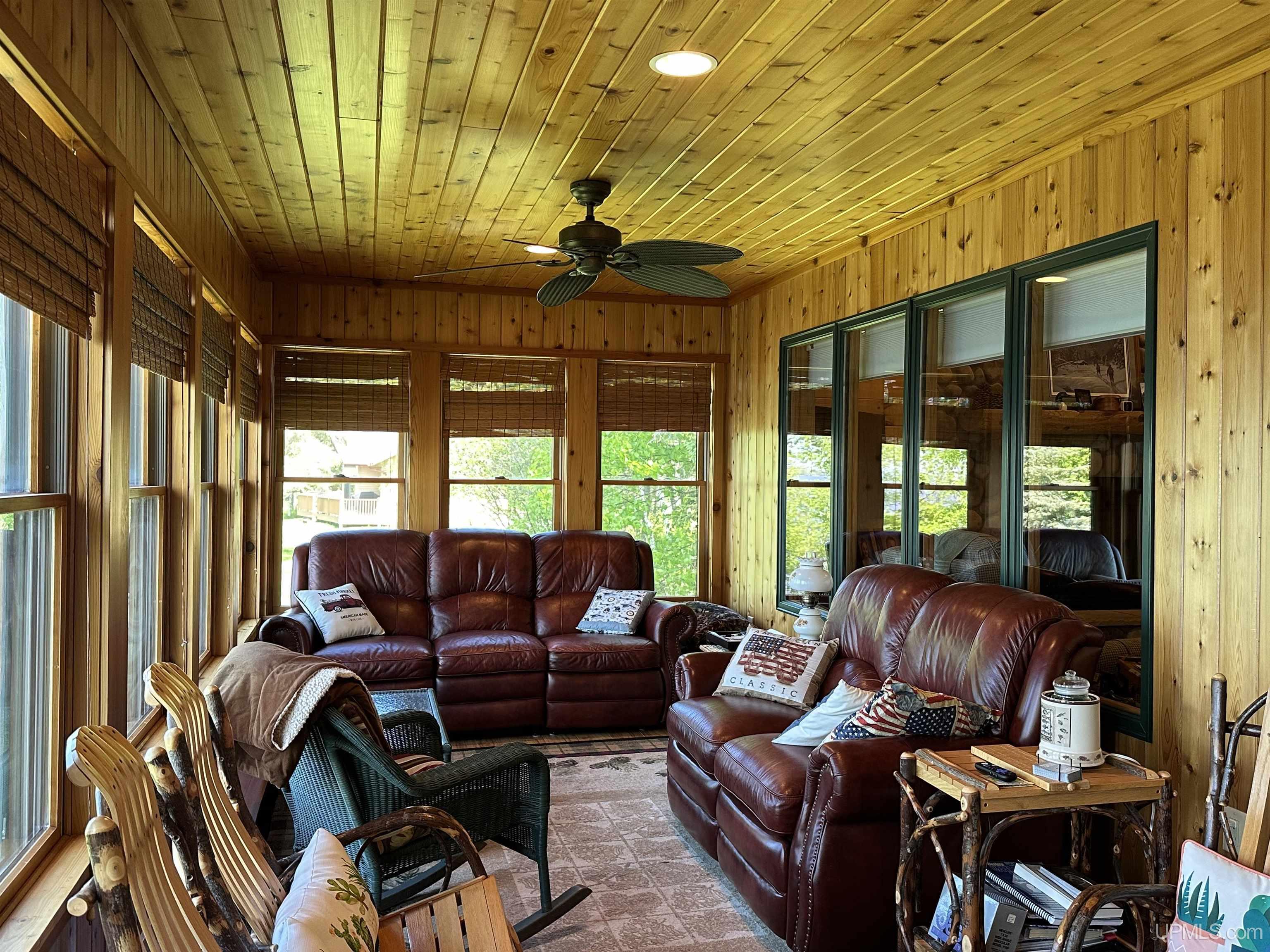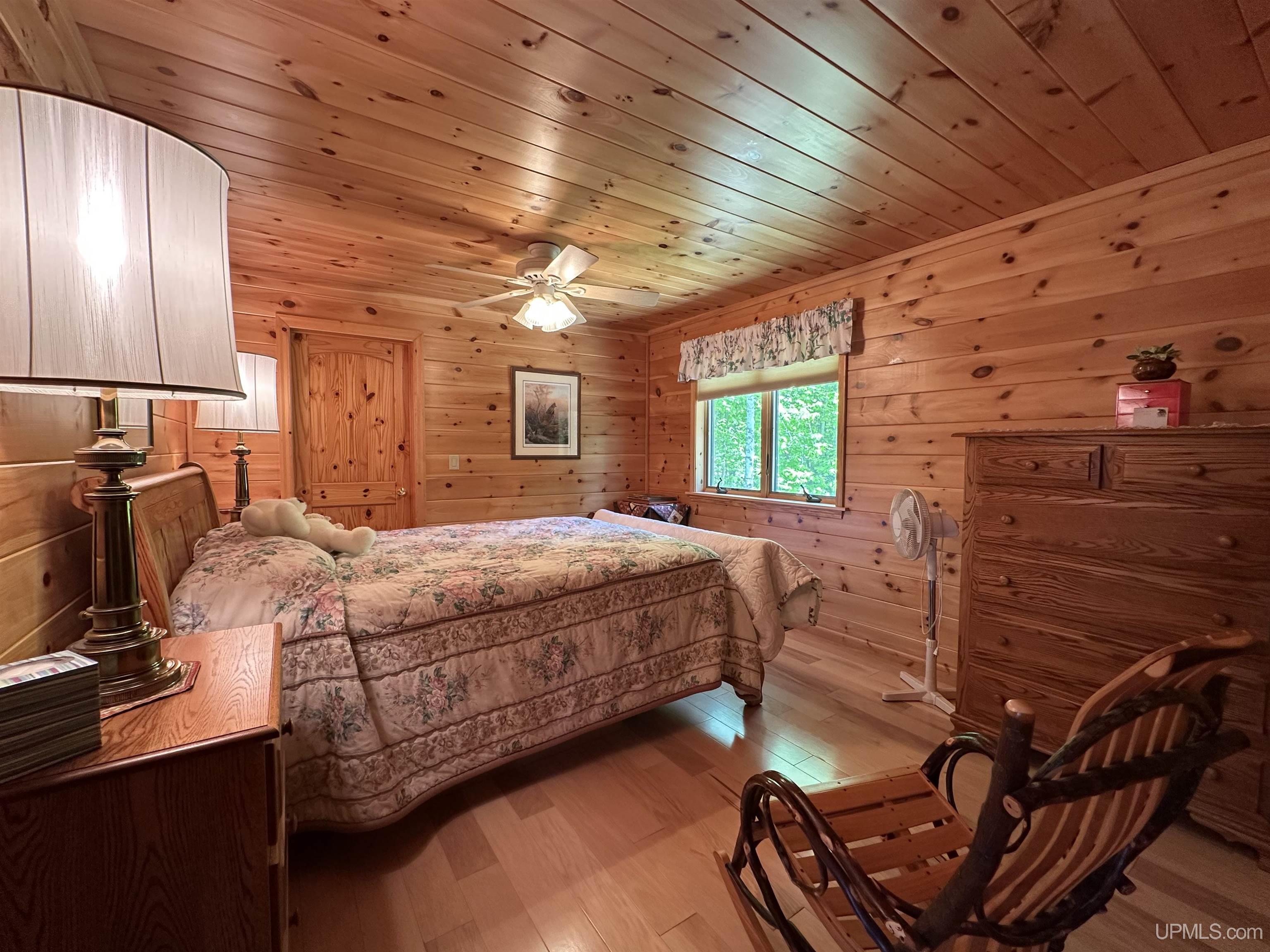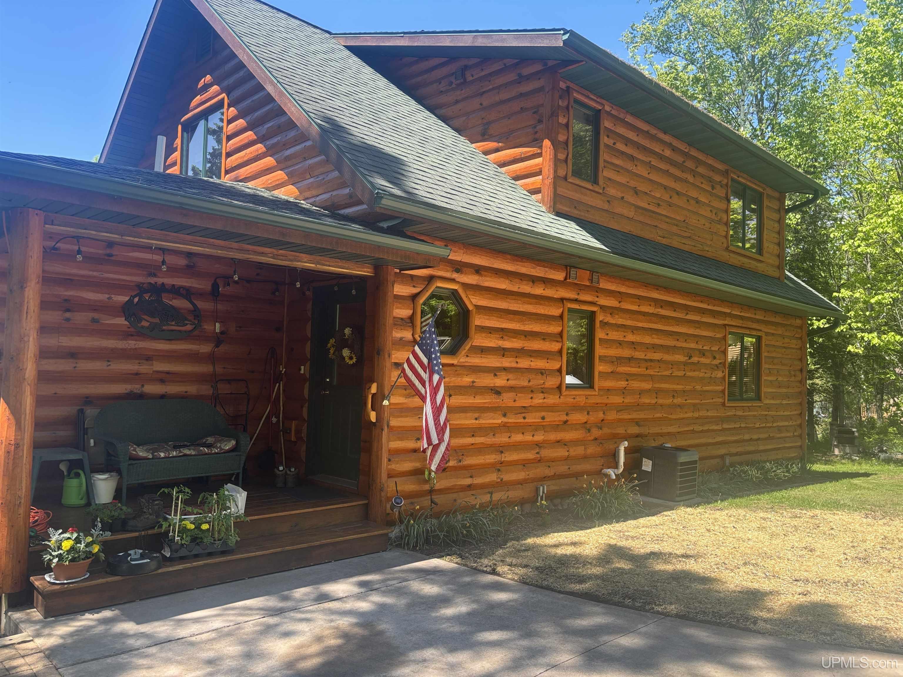 Nestled on the picturesque shores of Lake Gogebic, this magnificent log-sided home offers a perfect blend of rustic charm and modern luxury. With a thoughtful design spanning 1 ½ stories, this residence features three and a half baths, making it ideal for both family living and entertaining guests. As you step inside, you are greeted by the warmth of hickory wood flooring that flows seamlessly throughout the main living areas. The interior is adorned with beautiful knotty pine walls that rise to the ceiling, creating an inviting and cozy atmosphere. The centerpiece of the living space is a stunning gas fireplace, perfect for those chilly evenings spent indoors. The heart of this home is the bright, centrally located kitchen, featuring quartz countertops that provide both elegance and durability. Whether you're preparing a family meal or entertaining friends, you'll appreciate the ample workspace and modern appliances. Step into the lake-facing three-season sunroom, where you can bask in the beauty of nature while enjoying your morning coffee or evening sunsets. The home also boasts an indoor sauna, and lower level family room providing a private retreat for relaxation after a day of outdoor activities. Outside, you'll find a meticulously landscaped yard that enhances the beauty of the property and leads to a charming lakeside fish house. The blacktop driveway adds convenience and curb appeal, while the expansive 55-foot dock is perfect for boating, fishing, or simply soaking up the sun. For the hobbyist or car enthusiast, this property features two garages: a spacious three-car garage and an additional two-car garage with a workshop and living quarters above, offering extra storage and versatility. With a robust 400 amp electrical system and a sturdy poured foundation, this home is built to last. Immaculately kept, this property is not just a home; it’s a lifestyle waiting to be embraced. Experience the tranquility and beauty of lakeside living at its finest! |