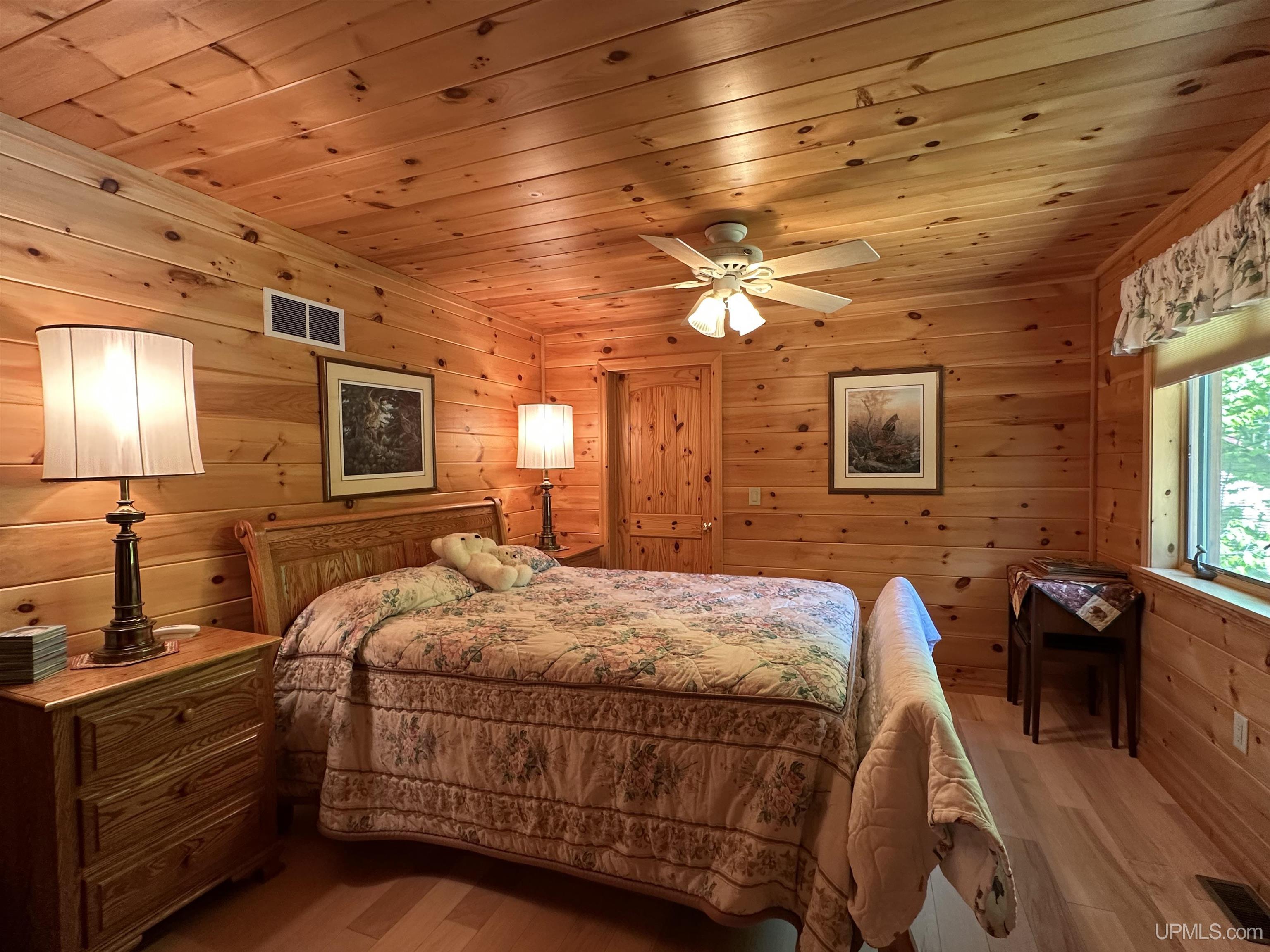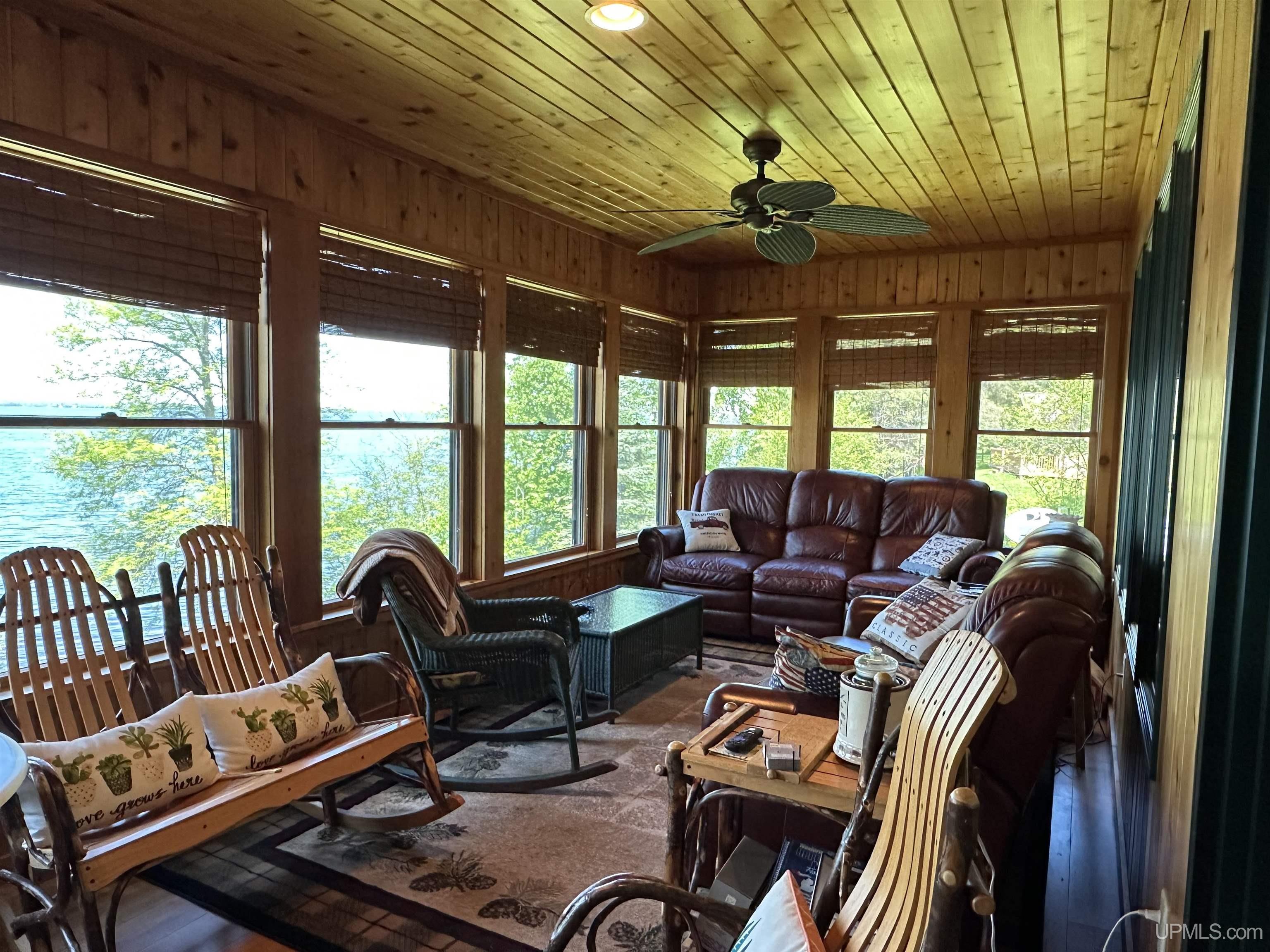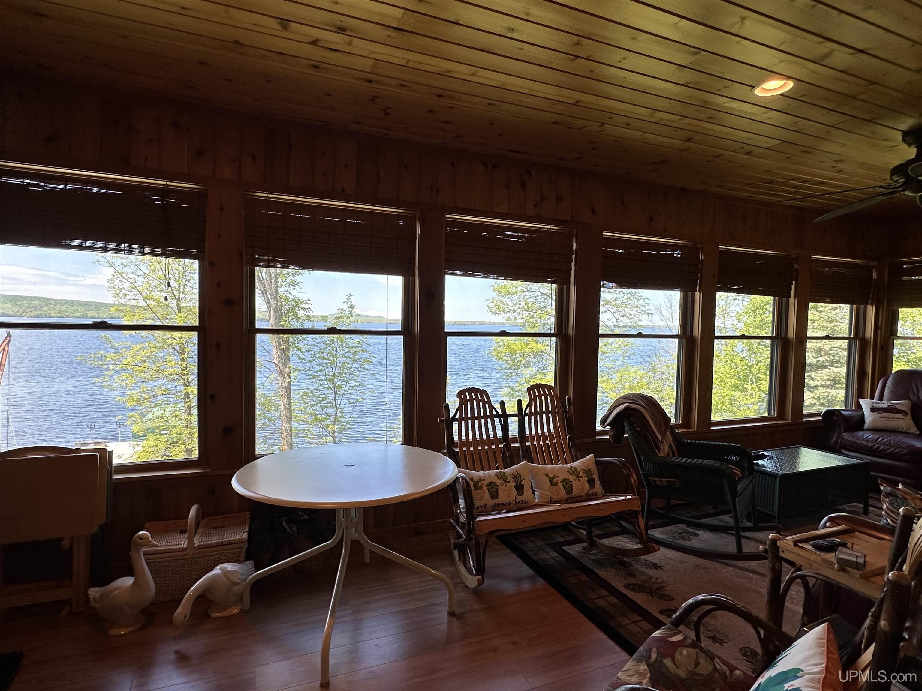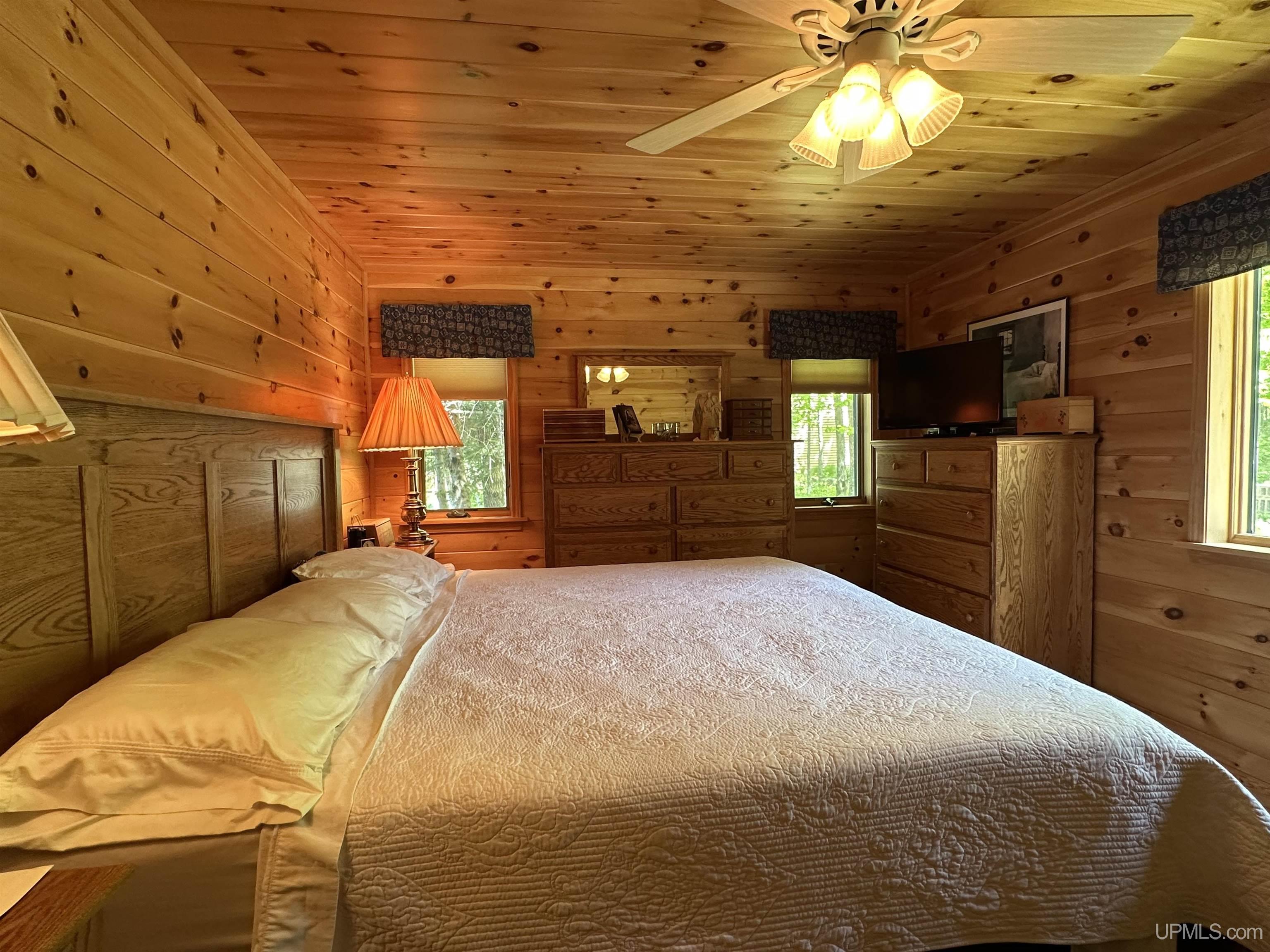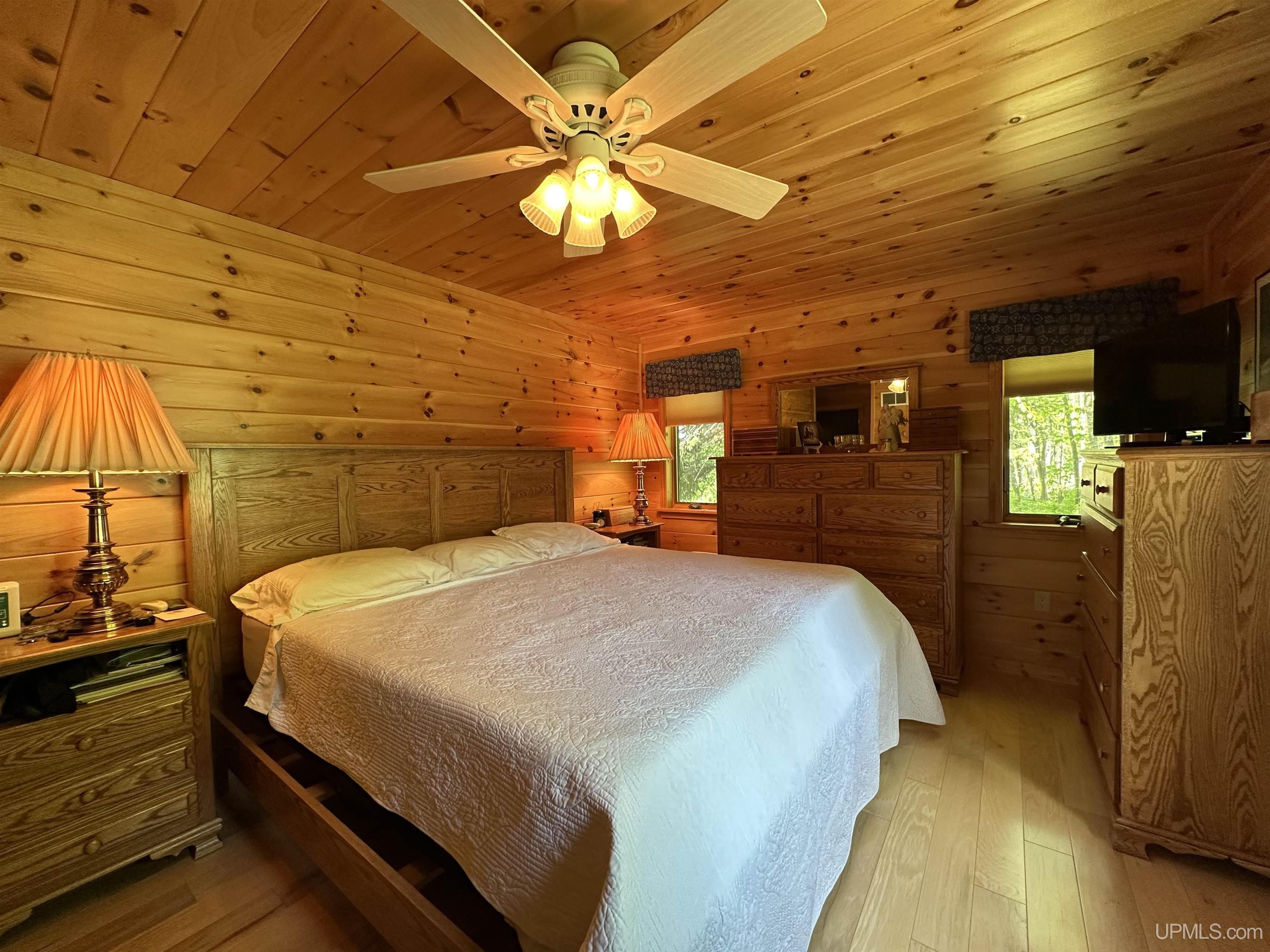 Nestled on the picturesque shores of Lake Gogebic, this magnificent log-sided home offers a perfect blend of rustic charm and modern luxury. With a thoughtful design spanning 1 ½ stories, this residence features three and a half baths, making it ideal for both family living and entertaining guests. As you step inside, you are greeted by the warmth of hickory wood flooring that flows seamlessly throughout the main living areas. The interior is adorned with beautiful knotty pine walls that rise to the ceiling, creating an inviting and cozy atmosphere. The centerpiece of the living space is a stunning gas fireplace, perfect for those chilly evenings spent indoors. The heart of this home is the bright, centrally located kitchen, featuring quartz countertops that provide both elegance and durability. Whether you're preparing a family meal or entertaining friends, you'll appreciate the ample workspace and modern appliances. Step into the lake-facing three-season sunroom, where you can bask in the beauty of nature while enjoying your morning coffee or evening sunsets. The home also boasts an indoor sauna, and lower level family room providing a private retreat for relaxation after a day of outdoor activities. Outside, you'll find a meticulously landscaped yard that enhances the beauty of the property and leads to a charming lakeside fish house. The blacktop driveway adds convenience and curb appeal, while the expansive 55-foot dock is perfect for boating, fishing, or simply soaking up the sun. For the hobbyist or car enthusiast, this property features two garages: a spacious three-car garage and an additional two-car garage with a workshop and living quarters above, offering extra storage and versatility. With a robust 400 amp electrical system and a sturdy poured foundation, this home is built to last. Immaculately kept, this property is not just a home; it’s a lifestyle waiting to be embraced. Experience the tranquility and beauty of lakeside living at its finest! |