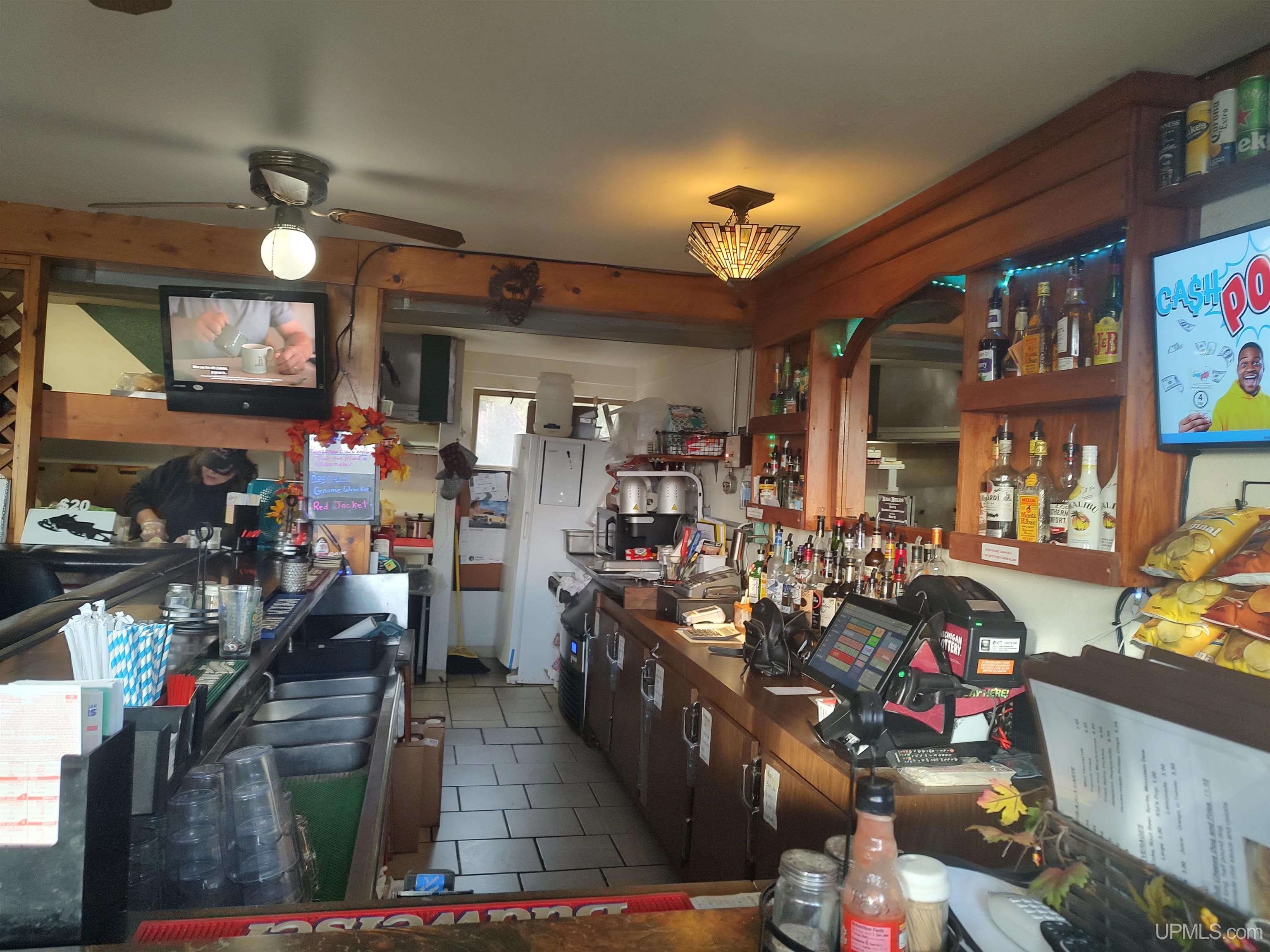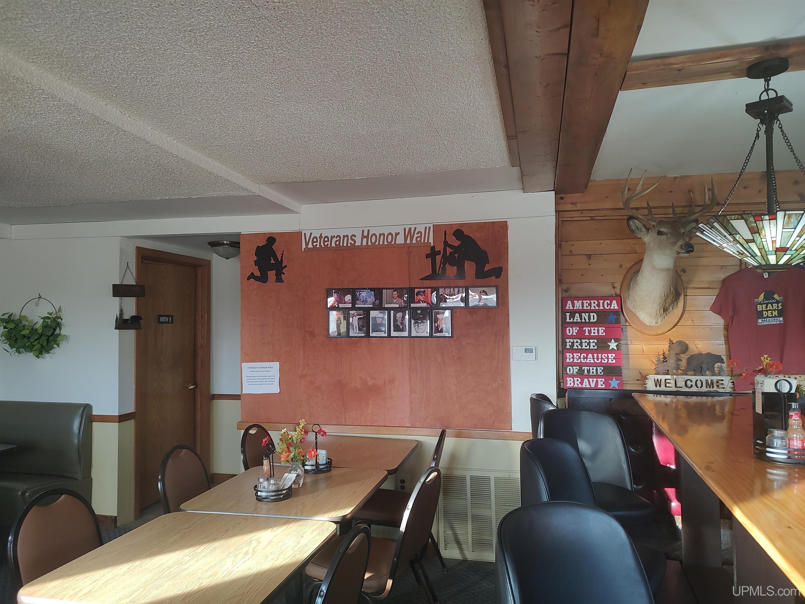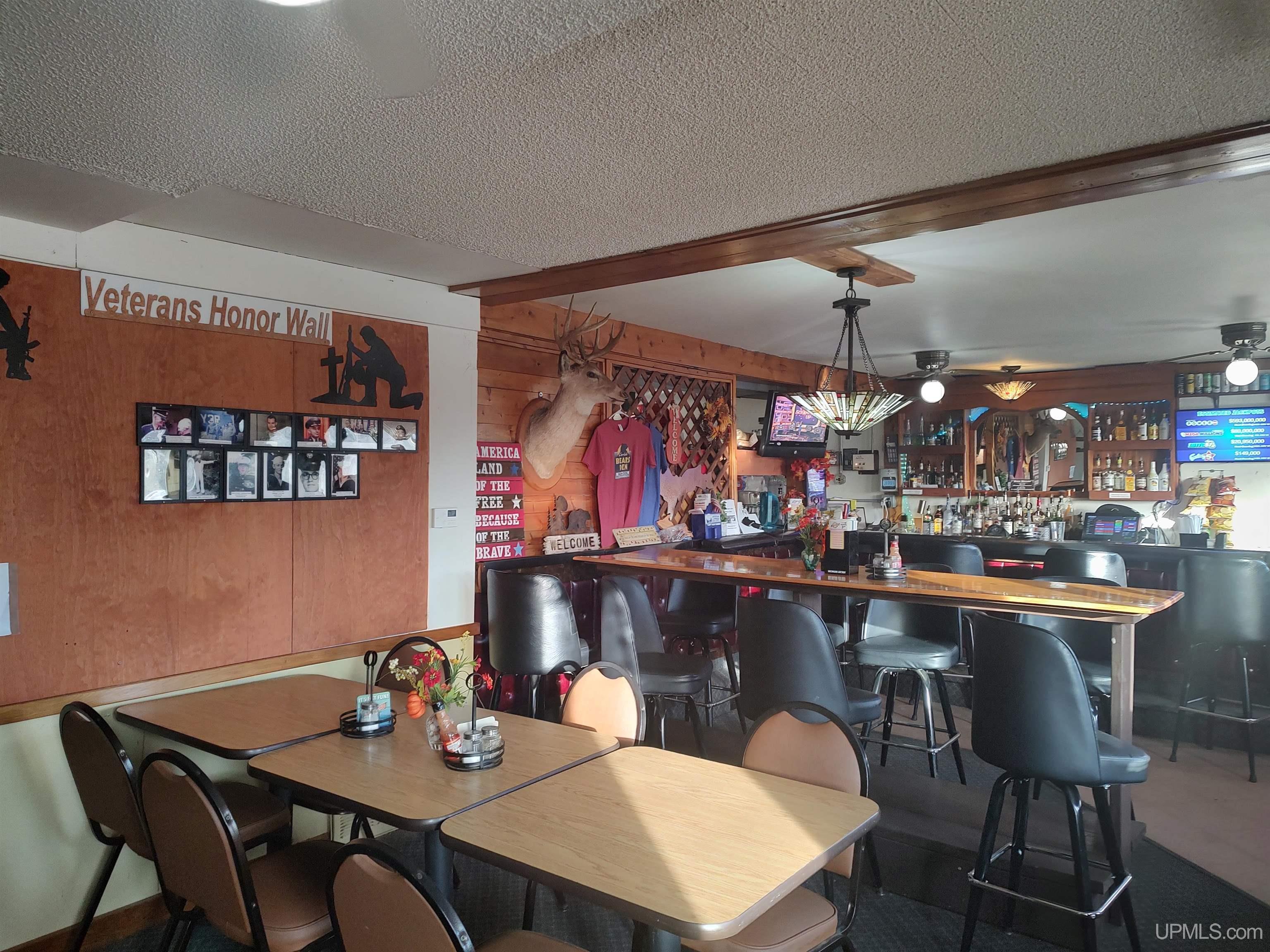 The Bear’s Den Bar currently open to the public, provides a welcoming spot for good food, drinks, and conversation after a day on the lake or trail. - Set on the Highway 41 thoroughfare this Bar/Restaurant has the only liquor license in Baraga County's Spurr Township! There is a groomed snowmobile trail to the front door so there is great tourist, snowmobile and local trade. Food and drinks are available, as well as Take Out. There is plenty of room to expand the existing building. The current Serving Area is 14x22, the Bar Area is 10x14, the Kitchen area is 10x19, the Men's Bathroom is 5x10 and the Women's Bathroom is 7x10. The well and septic system would support a larger seating capacity. The partially wooded 4.14 acre property with high visibility highway frontage, and with commercial/industrial zoning, there would be the ability to expand services by building seasonal Rental Cabins, an RV Park, etc. The restaurant/tavern is within walking distance of three motels. Great tourist and snowmobile trade, along with ever loyal locals make this a great place to own and operate. |