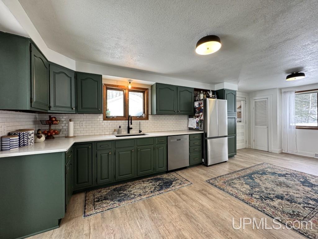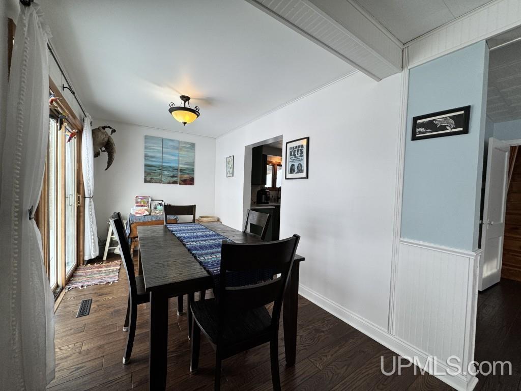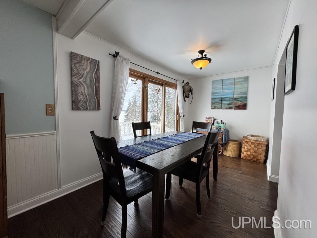 Enjoy 167’ of Lake Superior shoreline with this charming yet tastefully updated 2-story home in Skanee, Michigan! This 4 bedroom, 2 bathroom home offers the perfect mix of modern improvements and timeless character. Step into the beautifully renovated kitchen featuring new flooring, quartz countertops, a drop-in quartz sink, a stylish white ceramic tile backsplash and all new appliances in 2024. The kitchen flows into the dining room, where a sliding glass door leads out to the deck overlooking the yard and Lake Superior—an ideal spot to unwind and take in the sunsets over the bay. The dining room and living room both feature new hardwood floors, and the living room offers a large picture window facing the lake along with a free-standing propane fireplace. The main floor also includes a full bathroom and an additional room currently used as a bedroom that would make an excellent home office. Upstairs, you’ll find three more bedrooms and a second full bathroom complete with a soaking tub. The spacious primary bedroom features a walk-in closet. The basement is high and dry and includes the laundry area, a wood-burning stove, and a reverse osmosis water treatment system. The forced air furnace was replaced in 2021, and the water heater is 2019. Outside, the detached 28x24 two-car garage offers plenty of room for vehicles and all your fishing, kayaking, and beach gear. The property also features central air, a dock with a boat lift, and one of the nicest barrel saunas around, complete with a beautiful custom stained glass window. Huron Bay is well known for excellent fishing, including the spring walleye run, lake trout, salmon, and whitefish. The Skanee area is a recreational paradise with nearby ATV trails and waterfalls, and this property is just a short distance from Finns Bar & Grill and the Huron Bay Trading Post for gas, snacks, and conveniences. |