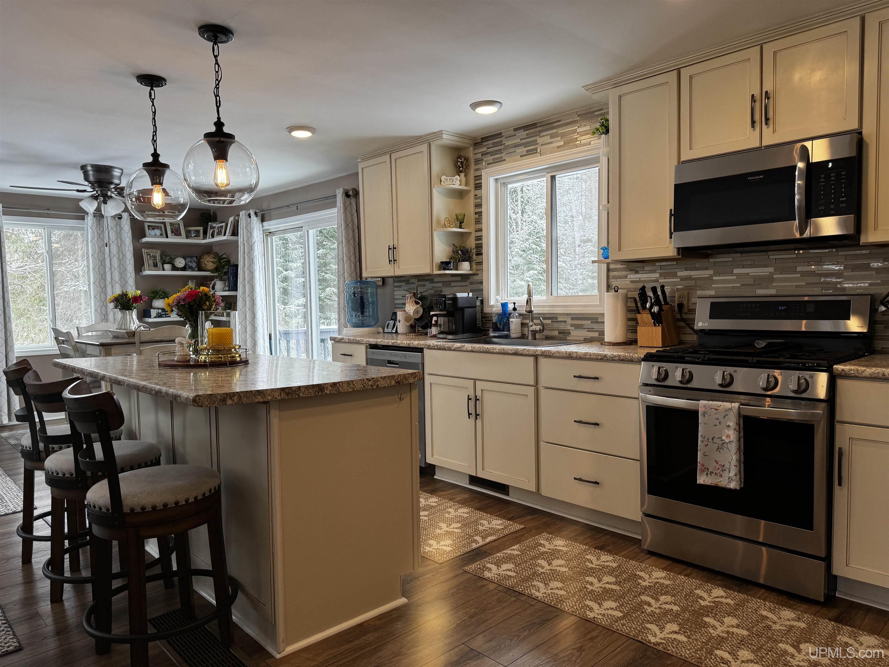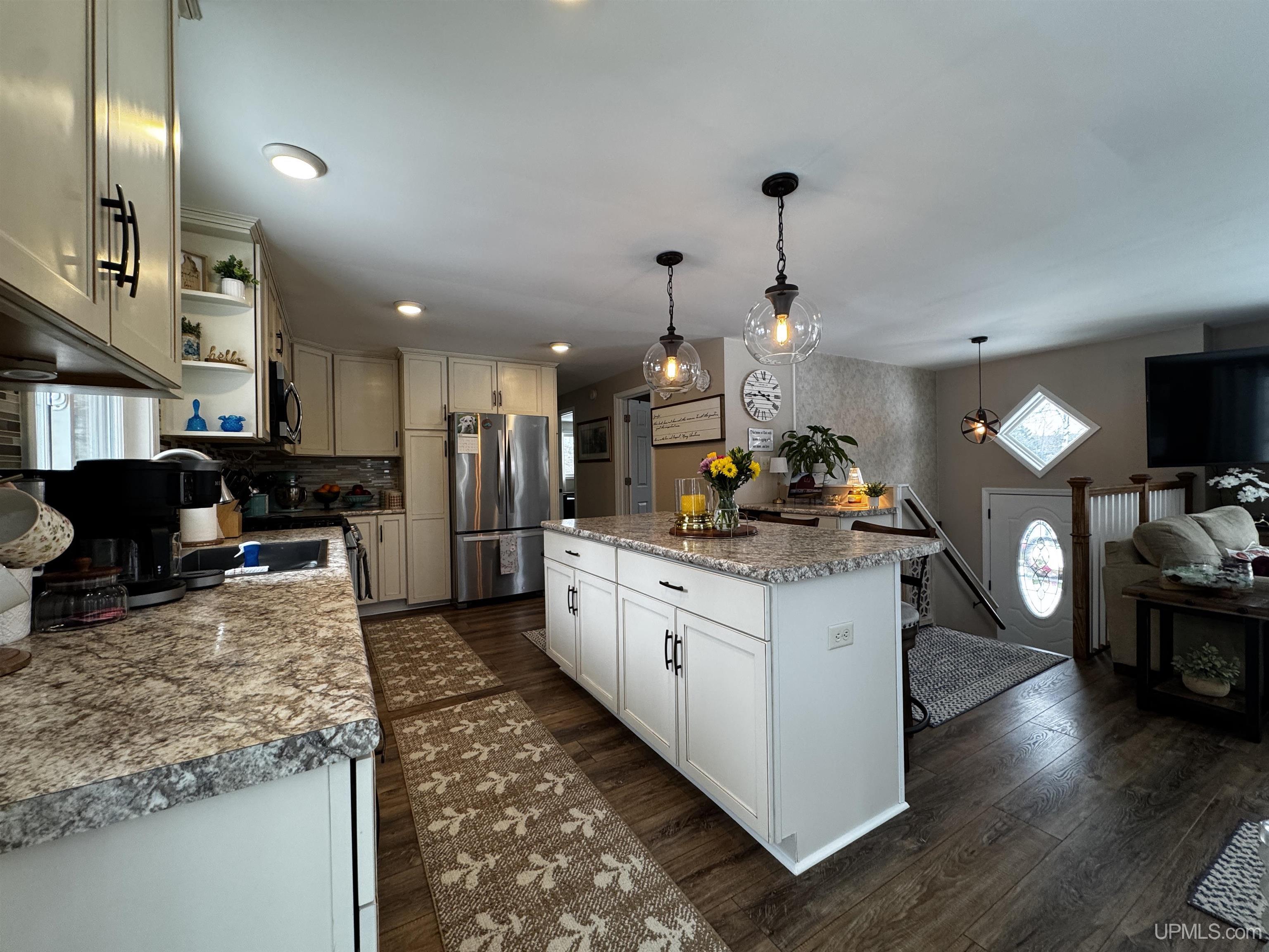 This well-maintained raised ranch offers over 1800 finished sq ft, two comfortable bedrooms upstairs, and a spacious bedroom downstairs with a walk-in closet. The lower-level entry features a large entry with a spacious coat closet. You’ll also find a nicely updated family room downstairs, along with a generous storage area. The kitchen was fully remodeled in 2017, opening up the kitchen and living area into a bright, open-concept space with a large island and seating—ideal for everyday living and entertaining. All appliances, including the refrigerator, gas stove, microwave, and dishwasher, are stainless steel. Most of the upstairs features tastefully chosen, durable luxury vinyl plank (LVP) flooring. This Dickinson home was built in 1973 and over the years has seen several updates! The roof and windows were replaced in 2017, with all downstairs windows updated again in 2024. All windows are white vinyl-clad for a clean, low-maintenance finish. Central air conditioning keeps the home comfortable in the summer, and a newer forced-air furnace (2021) ensures efficient heating. The hot water heater was replaced in 2022. The backyard is fully enclosed with a solid 6-foot fence, making it ideal for kids, pets, and gardening. Enjoy outdoor living with a spacious 12’ x 24’ back deck and a low-maintenance Trex front entry deck. This home sits on 2 acres, the property offers a large, open front yard with established raspberry plants and apple trees. It provides a peaceful, country setting while still being conveniently located just outside of town! A detached 30’ x 40’ garage (built in 2006) offers ample space for multiple vehicles, storage, or a workshop. An outdoor wood boiler, located in the garage, has the capacity to heat the home, garage, and hot water. Many other nice features including commercial forest land that's within walking distance! The nearby Silver River is a designated trout stream and just a bike ride away! Lots of backroads, beaches and waterfalls close by! |