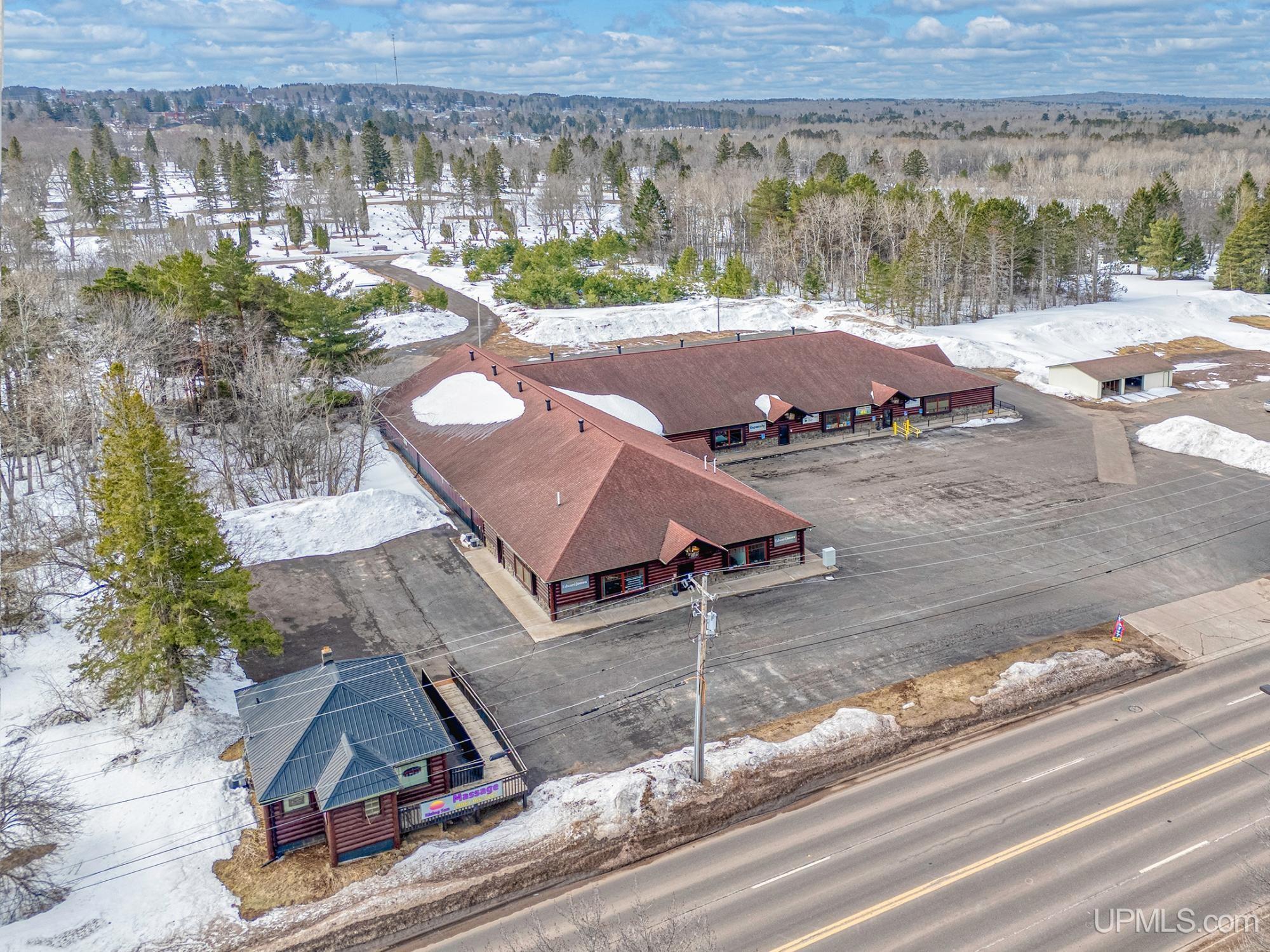 Exceptional opportunity to acquire a multifunctional commercial property in Ironwood, MI. Sunnyside Plaza presents a range of possibilities for entrepreneurs & investors alike! Extremely visible location off the highly trafficked US 2 while offering 4.3 acres (2-parcels) for future expansion. 19,500 sq ft plaza was meticulously built with the highest quality materials & standards, has 7 tenants, of which most have been long term, a 2nd 800 sq ft building with an 8th tenant, black topped parking front & back for up to 85 vehicles, 38x28 detached garage, additional storage building, security cameras, 3-phase power, city sewer & water, ADA compliance, sidewalks, half log & stone exterior, forced air & central air units for all units, multiple front display windows, attached garage with overhead door & an additional access from a back city street. The square footage for each unit space varies and could be easily adapted for other various uses & layouts. Specific details available. Operate as it is currently, almost $30K in gross lease, or capitalize with your own ideas & dreams. The versatility of this incredible commercial property offers numerous opportunities for growth & success. |