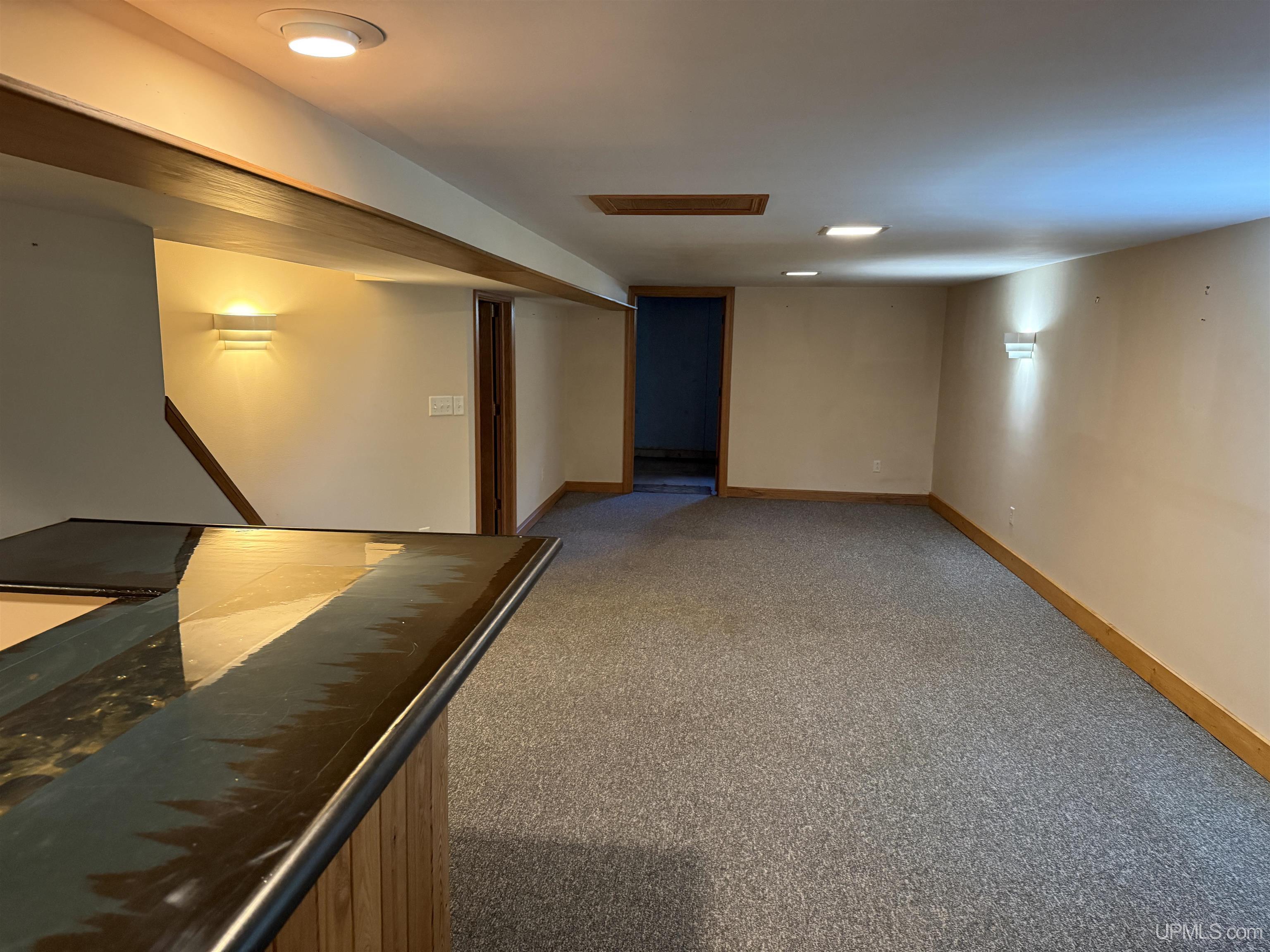 This is a 3BR/1BA raised ranch home in Chassell has a newer attached two-car garage. Main house has 100A breaker panel, with small fuse panel in garage; home also has a newer standby Generac generator (2022)! Some newer engineered wood floors in livingroom and bedroom. The three bedrooms are all on the main floor. The bathroom was redone with nice ceramic tile and rain head shower setup a few years ago. The basement has a huge family room with a corner bar built-in, a utility/laundry room, and a large wood heated sauna/changing room. The bar has some cool broken glass inset in epoxy resin. The seller recently had Northland Basement install some drain tile in the utility room of the basement to work along with an existing sump pump. The whole house and garage architectural shingle roof was done about 8 years ago. The furnace was replaced a year or two ago and is high efficiency natural gas. The home is connected to township water and has it's own private septic system (pumped a year ago). It has reasonable heating bills. It's on a larger corner lot with a larger open gazebo in the back yard. The front deck is 12x17 and elevated for a nice outdoor space facing east. This home would be great for a single person, retirees, or a smaller family. Some personal furnishing may be available to a buyer. |