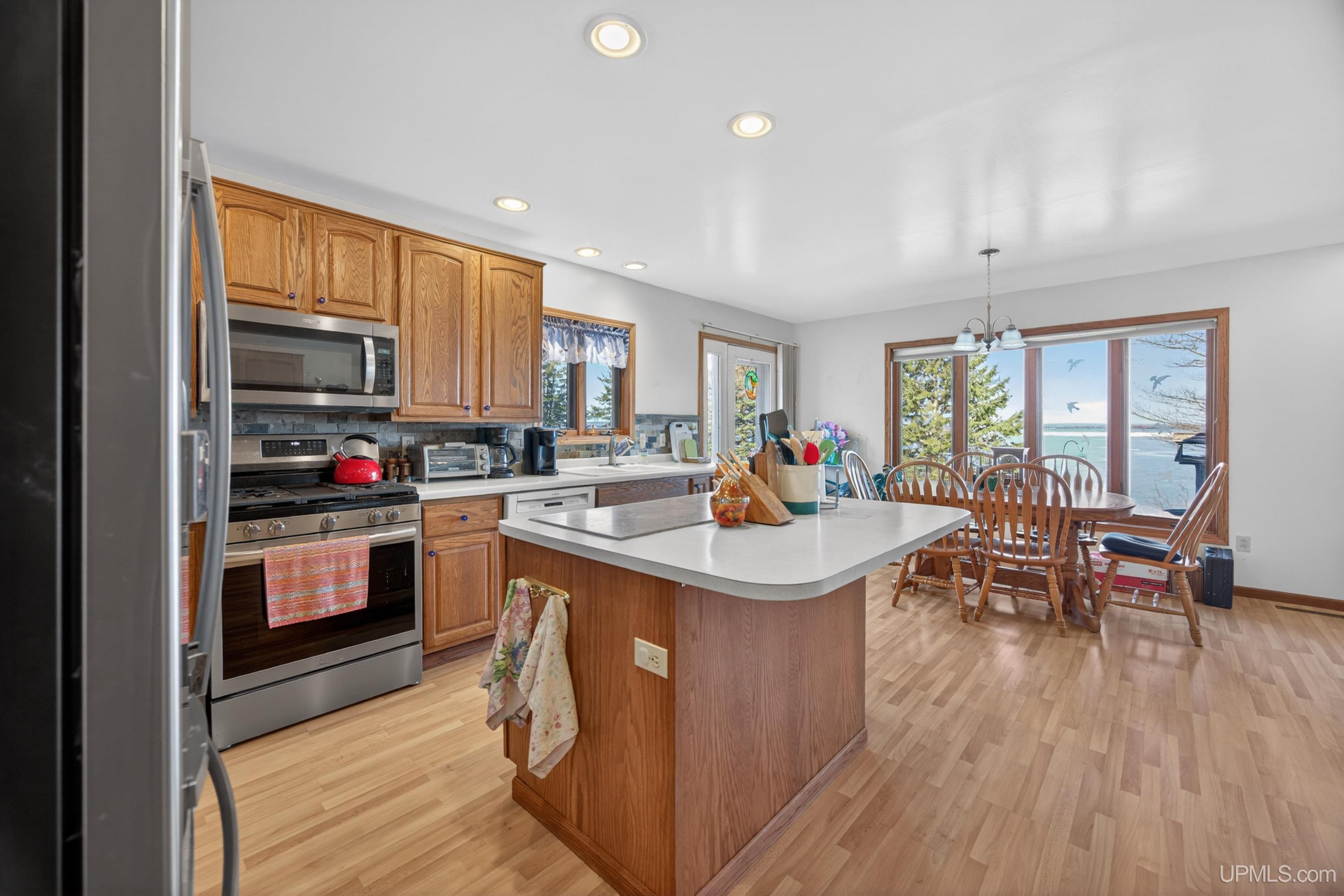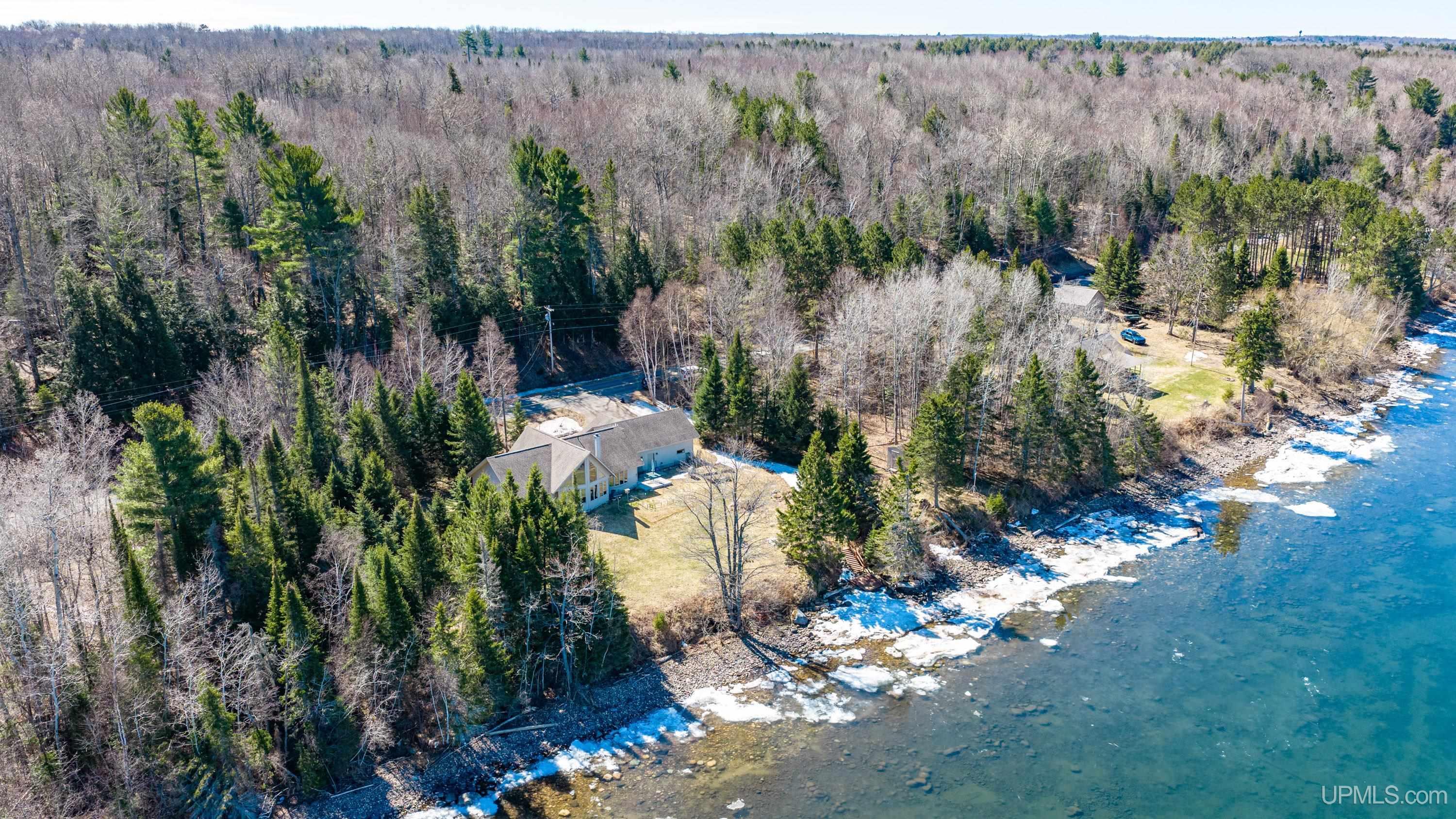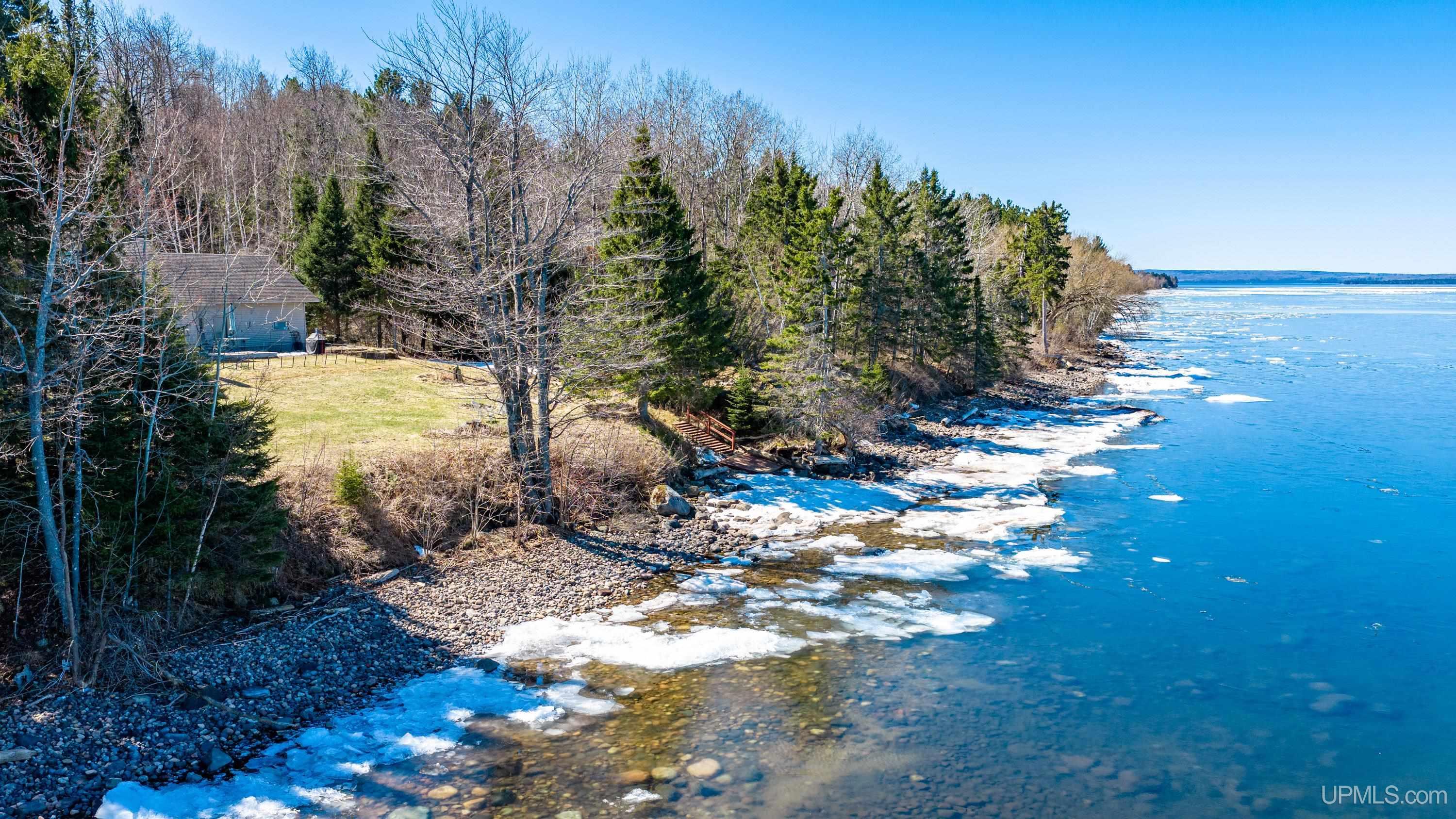 Experience breathtaking sunsets over scenic Lake Superior! This home is thoughtfully designed to maximize the views and offers convenient one-level living. Situated about five miles from downtown L’Anse, it provides a private atmosphere with approximately 434 feet of shoreline creating a buffer between you and your neighbors. The living room features a vaulted ceiling and expansive windows for panoramic lake vistas, as well as a wood burning stove for cozy evenings. On the main floor, you’ll find a kitchen with pantry, island, and tiled backsplash, a dining area with access to both the deck and patio, and one of the bedrooms is situated with a lake view. There’s also a second bedroom, a two bathrooms (one with laundry), and an entryway with closet space. The three-car attached garage comes with attic storage (12x22+/-) , the driveway is paved, and there’s a storage shed for your tools and recreational gear. Stairs lead down to the Lake Superior stone shoreline, perfect for rock hunting. The yard between the house and lakeshore offers plenty of room to relax outdoors. This home is ideal whether you plan to live here year-round or just seasonally! Most recent updates by seller include some appliances, dusk to dawn light, propane hot water heater, some painting and some floor coverings. ----- NOTICE: Information is believed accurate but not guaranteed. Buyers must inspect & verify all property details. Buyers accept all risks of inaccuracies, including but not limited to, acreage, lot size/location, square footage, & utility availability/costs. Real estate taxes will be reassessed & may change significantly after sale; do not assume your tax bills will match the seller’s. Taxes are not zero. GIS, apps and plat book pages/maps are not surveys. Audio/video recording may occur on the property; entry implies consent to recording. Buyer pre-approval or proof of funds documentation to be provided upon request. ----- OFFERS: Please allow 72 hours for a response. Seller may set or change offer deadlines at any time with or without notice. |