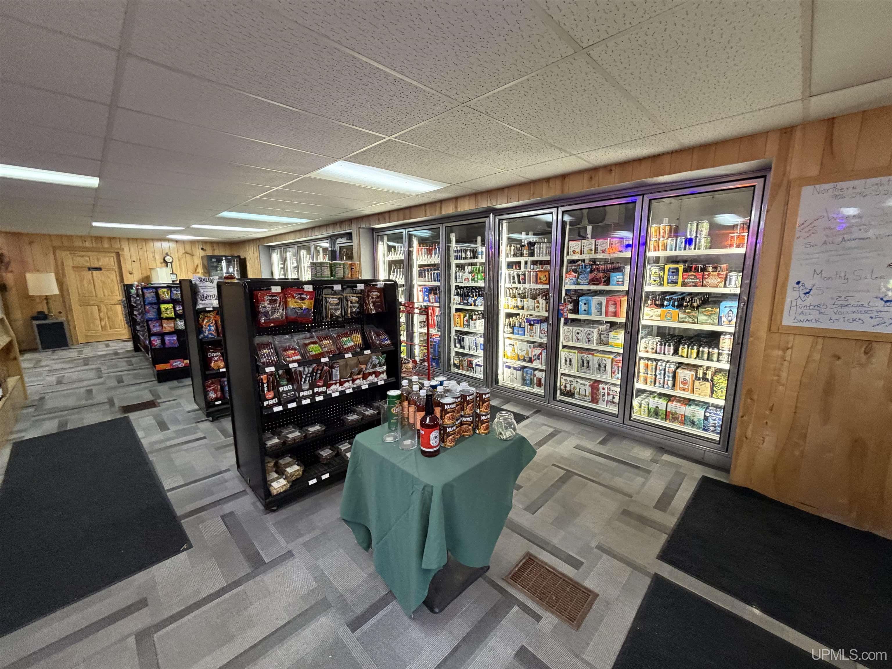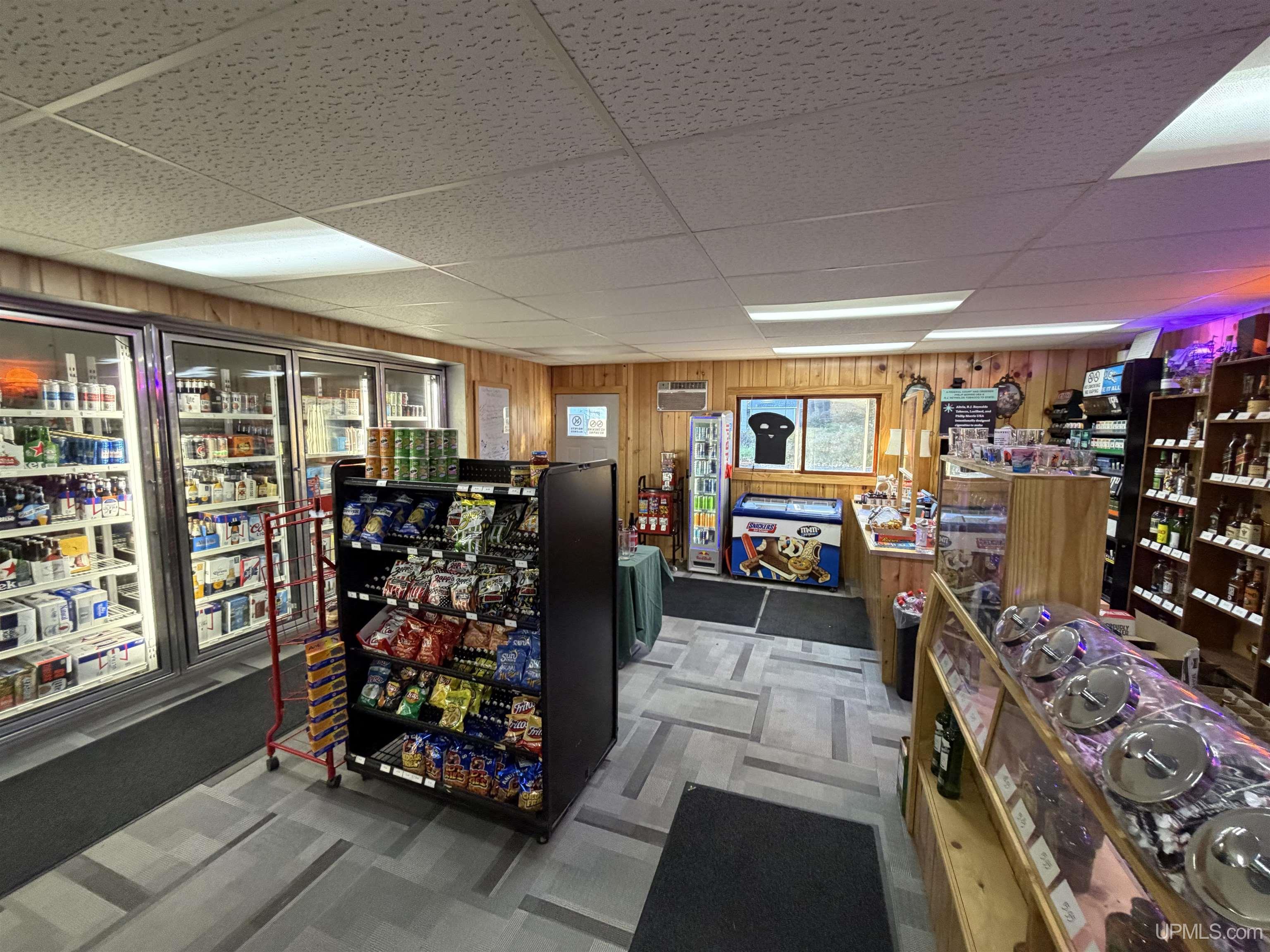 A great opportunity to own a well established business in the heart of the Keweenaw. This party store has been remodeled by the current owner as well as new coolers put in. The upstairs has an apartment for living space as well as attic space for a bedroom or storage. There is a nice private deck off the apartment as well. Located in Hubbell, and convenient for customers, this store is located on 3 lots for plenty of parking. Comes with 2 stand up freezers, Chest freezer, ice cream display freezer, commercial glass door refrigerator, washer, dryer, refrigerator, dishwasher. Check this great opportunity out today! |