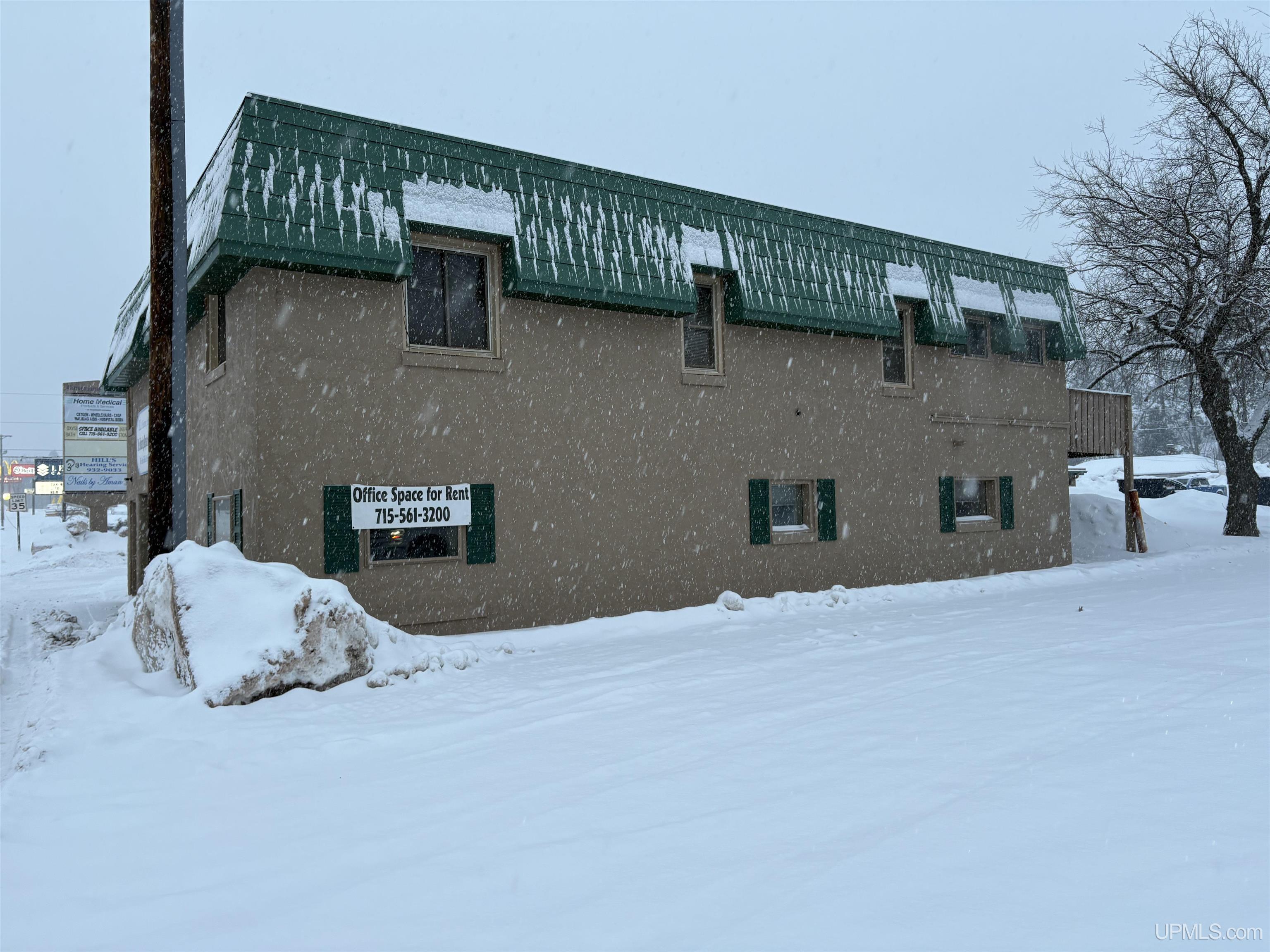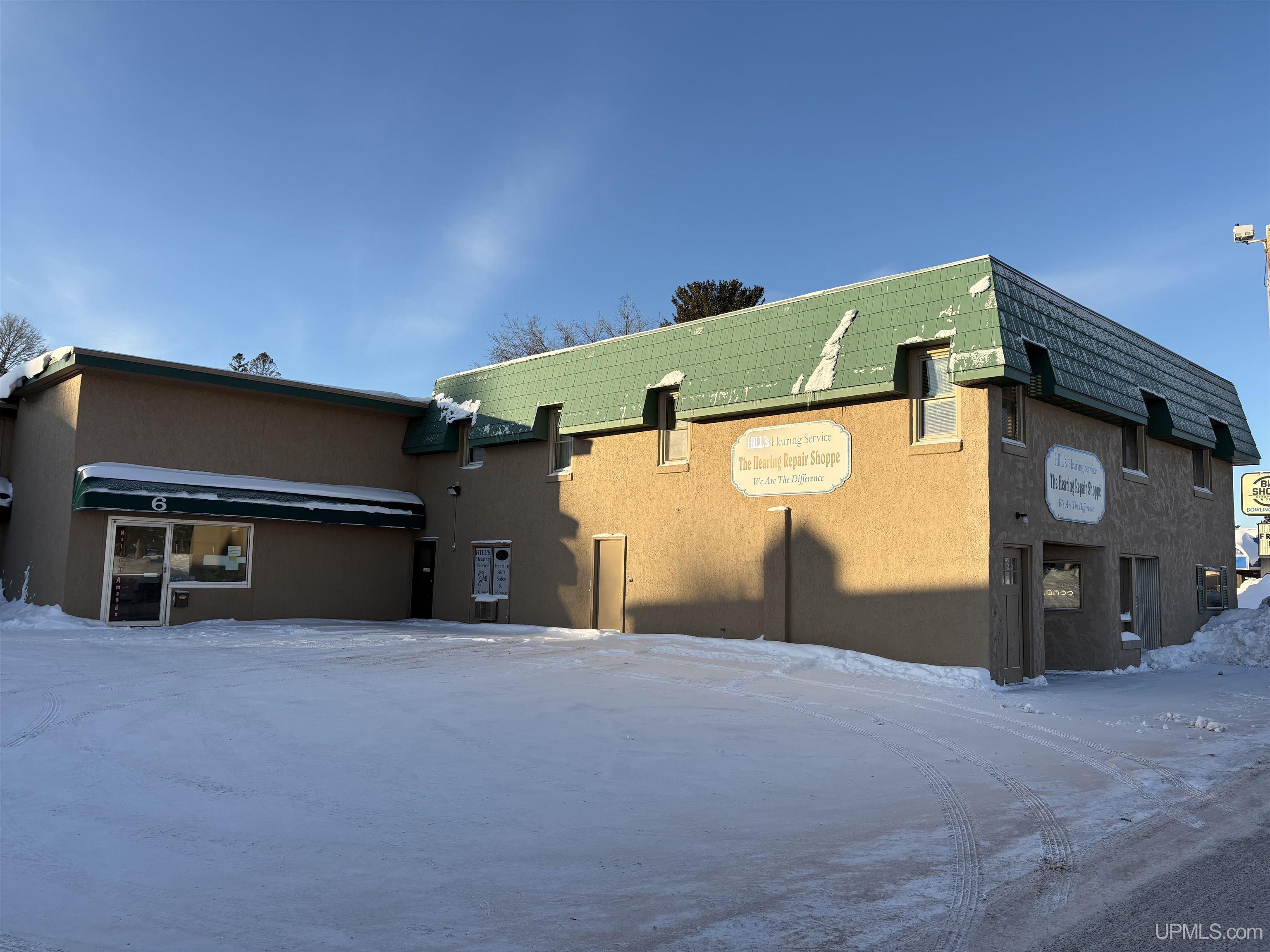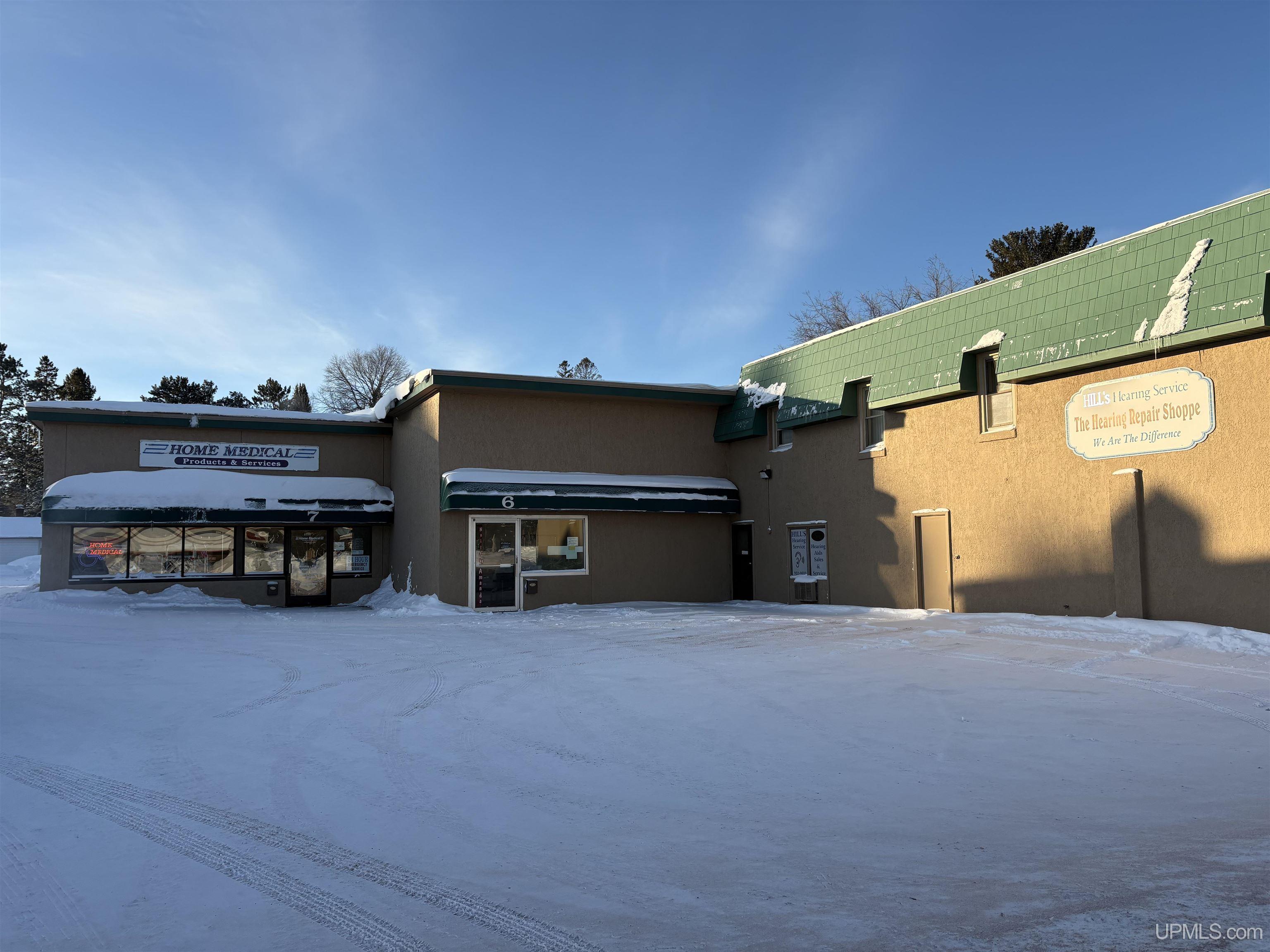 US Hwy 2 Commercial building! This building is currently leased by a Medical Product co., a nail salon, hearing aid service along with 2 apartments upstairs. There is a vacant main level commercial space all ready for a buyer to use, or select their next tenant. This building has a front parking lot and a large area behind for additional parking that can exit on Francis St. Nicely maintained, this building has a newer roof and a convenient location with prime US 2 visibility. |