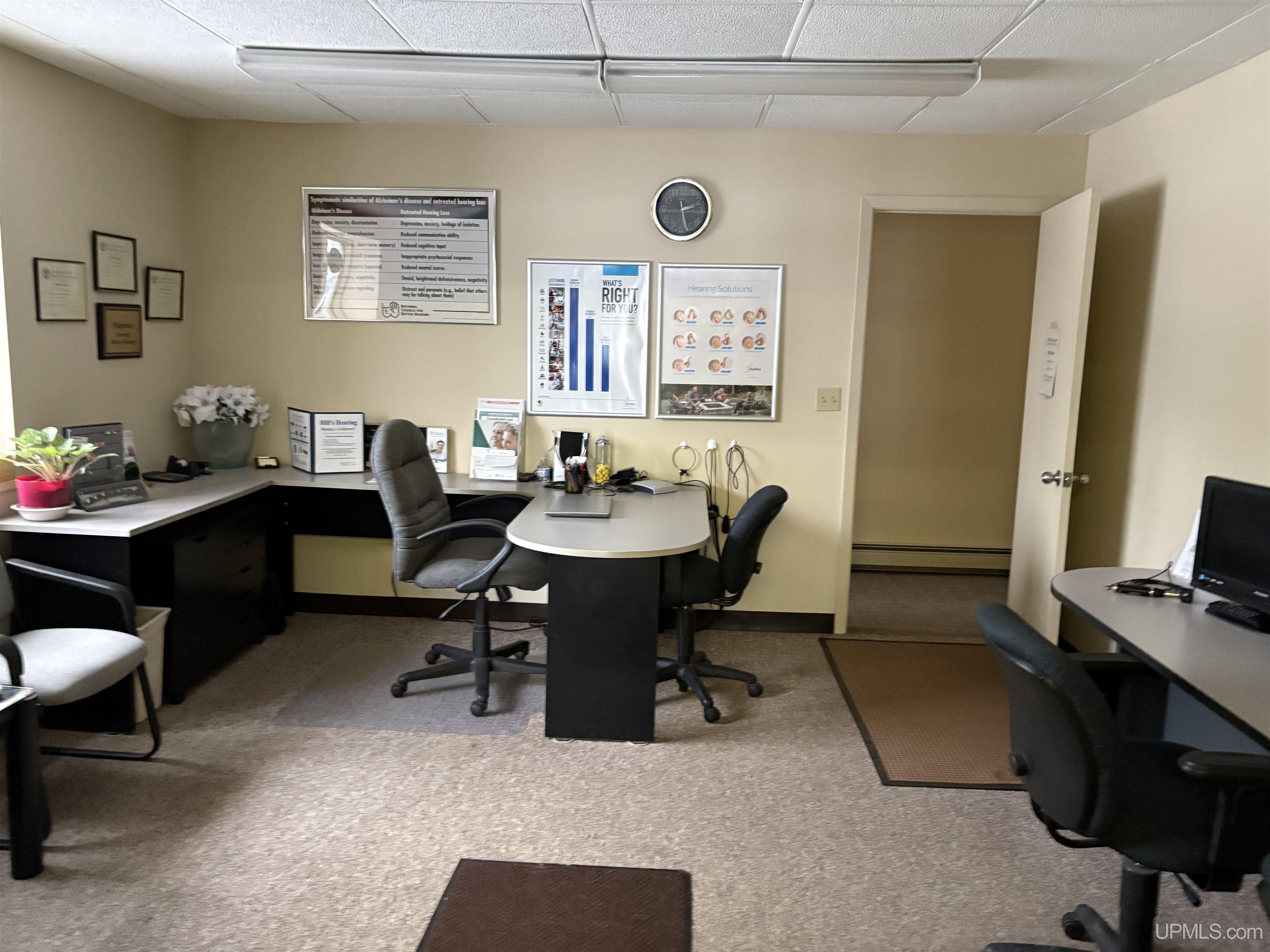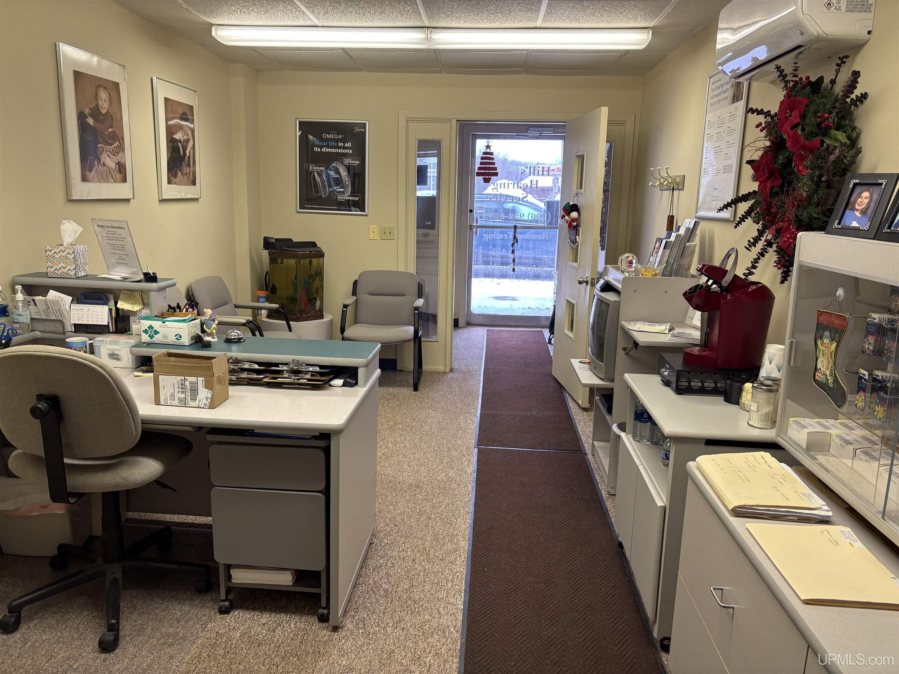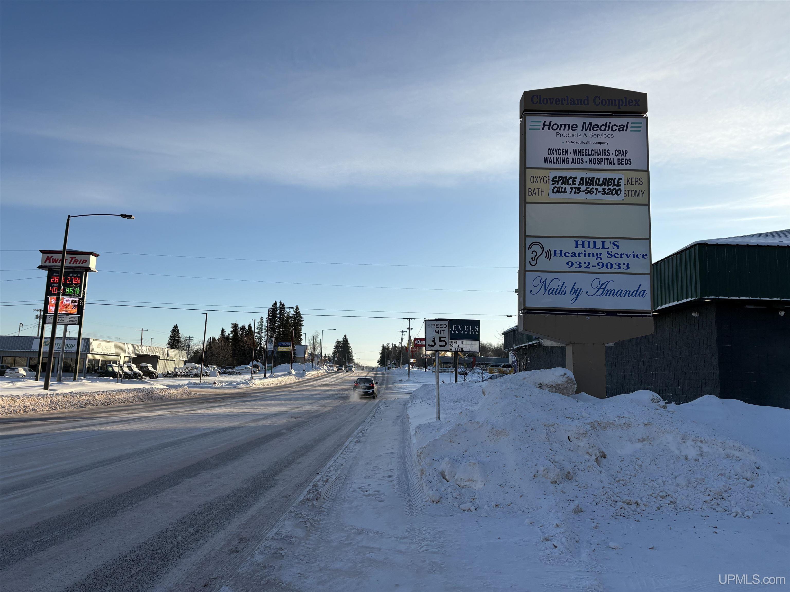US Hwy 2 Commercial building! This building is currently leased by a Medical Product co., a nail salon, hearing aid service along with 2 apartments upstairs. There is a vacant main level commercial space all ready for a buyer to use, or select their next tenant. This building has a front parking lot and a large area behind for additional parking that can exit on Francis St. Nicely maintained, this building has a newer roof and a convenient location with prime US 2 visibility. |