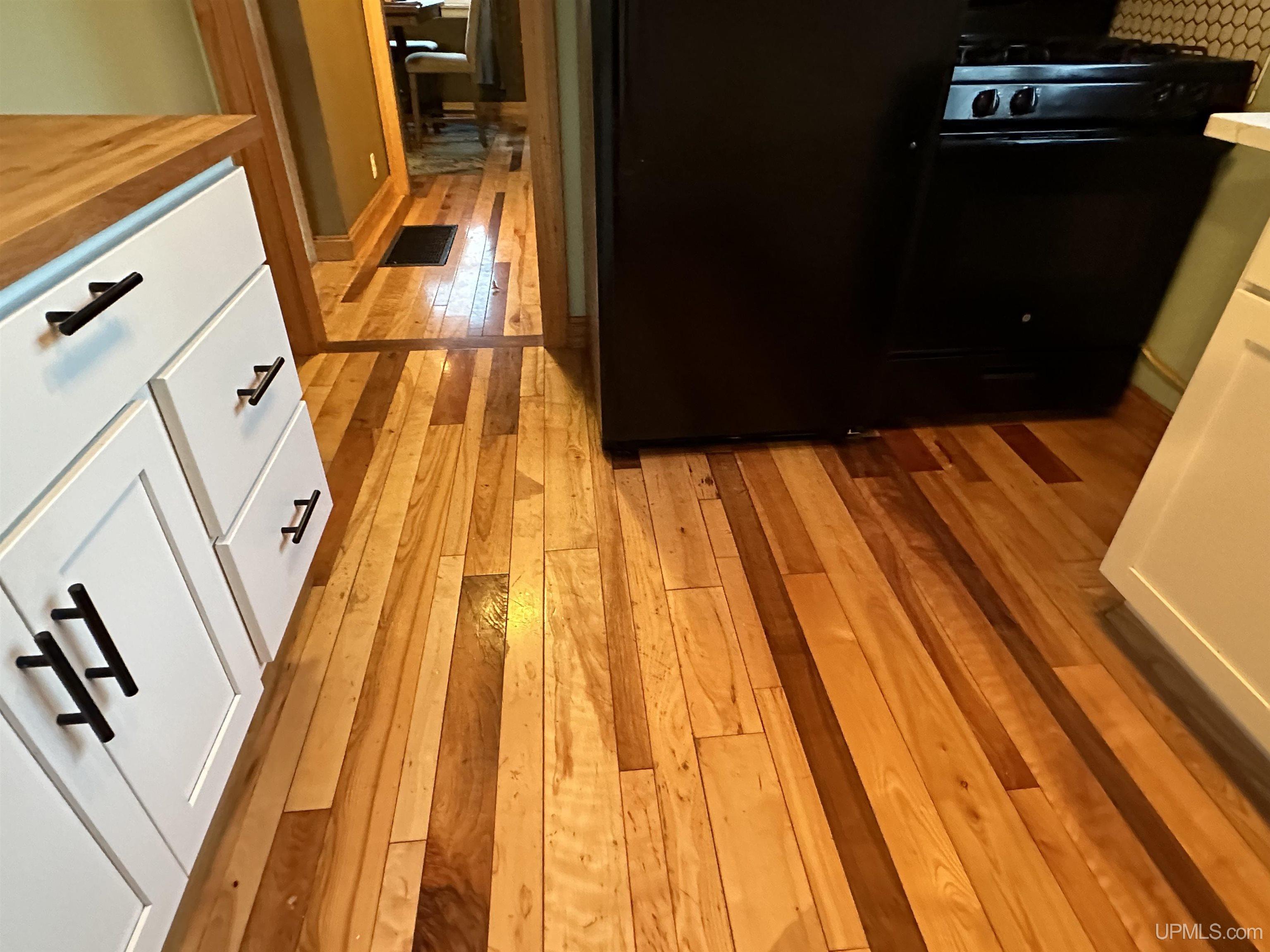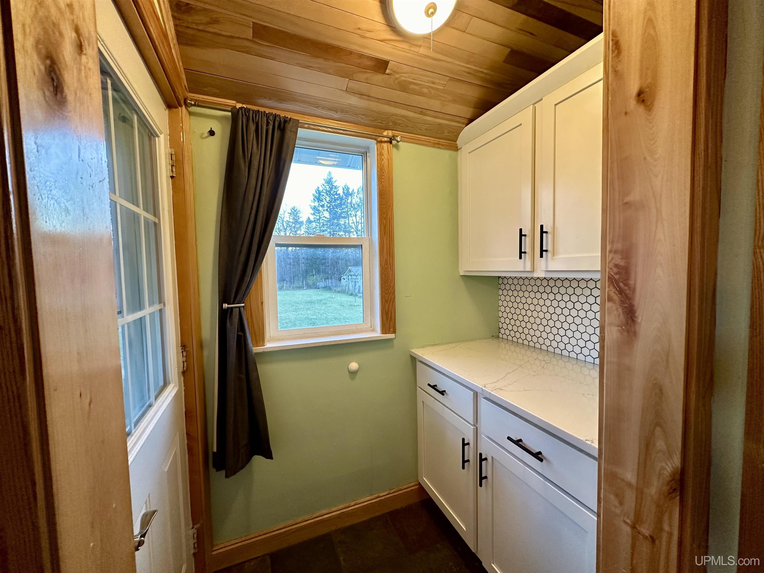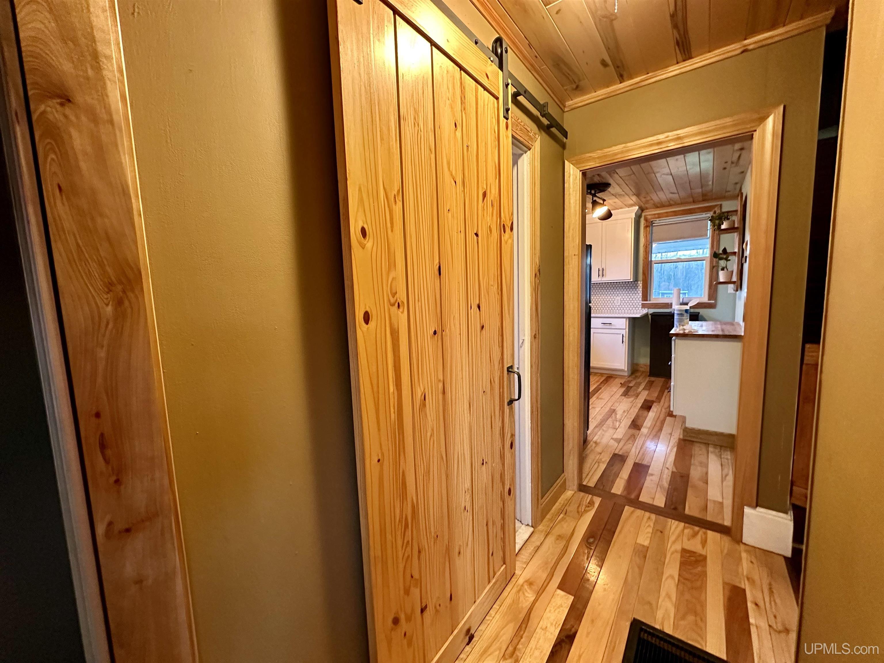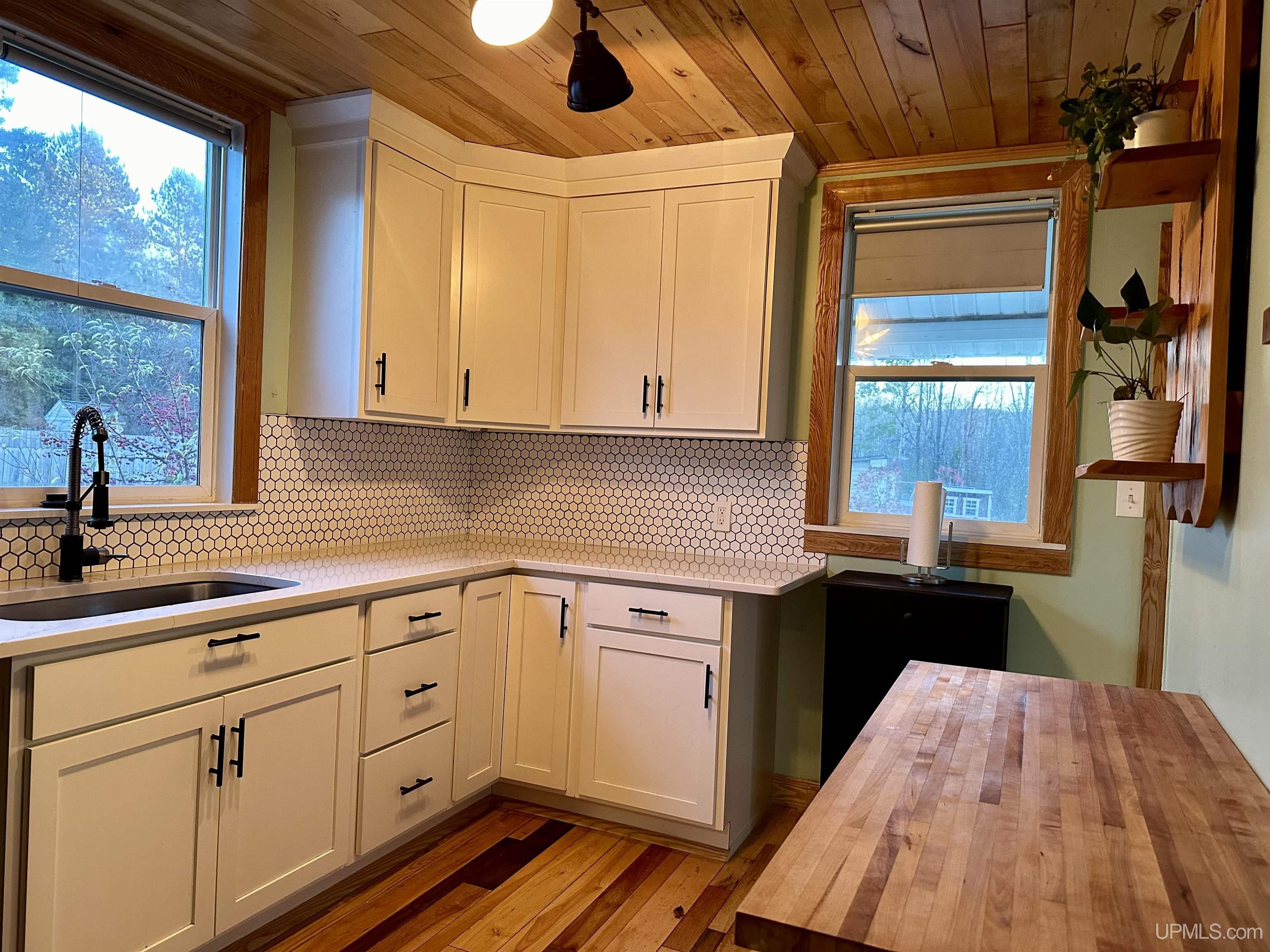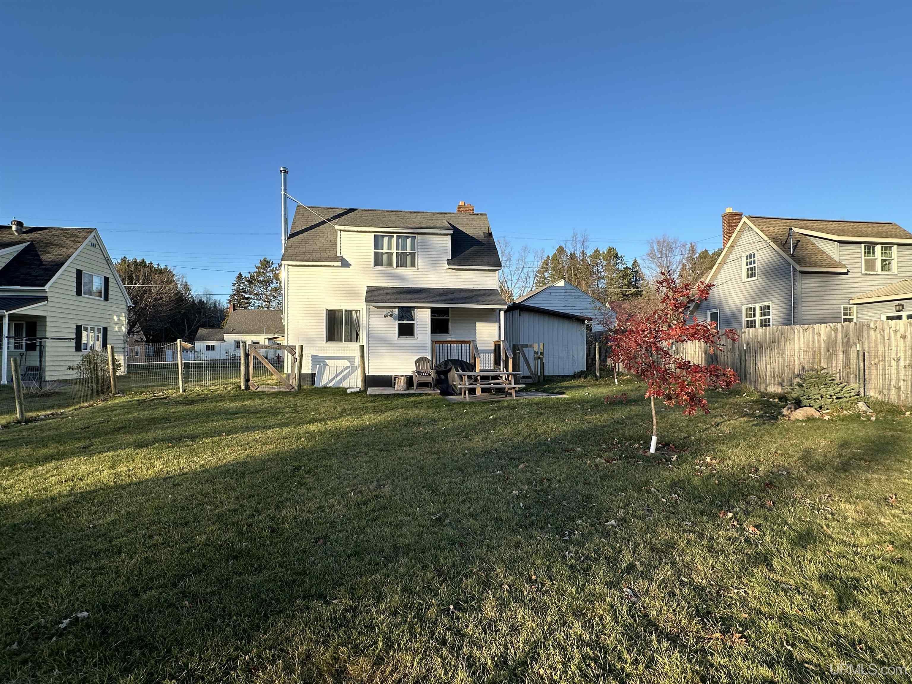 Sweet and cozy 3 bedroom, 1 bath home with some great updates. Nice Hickory flooring throughout the main level. Free standing wood stove in the living room to stifle the chill on the long winter nights. Slate Tiled entryway. Kitchen has tiled backsplash and beautiful marble countertops, with a little butler room nook off the kitchen. Updated bathroom with a barn door for a country touch. Nice new deck out the back door to enjoy the view of your half acre fenced in yard. Upstairs you will find 3 bedrooms or one would make a great office space or hobby room. Downstairs there is another finished 10 x 14 room that would make a great den, hang out, or guest quarters. Several out buildings including a wood shed. Yard has some new young maple and oak and fruit tress that will be sure to be pleasing in years to come. Great starter home or Northwoods getaway. Make your appointment today! |